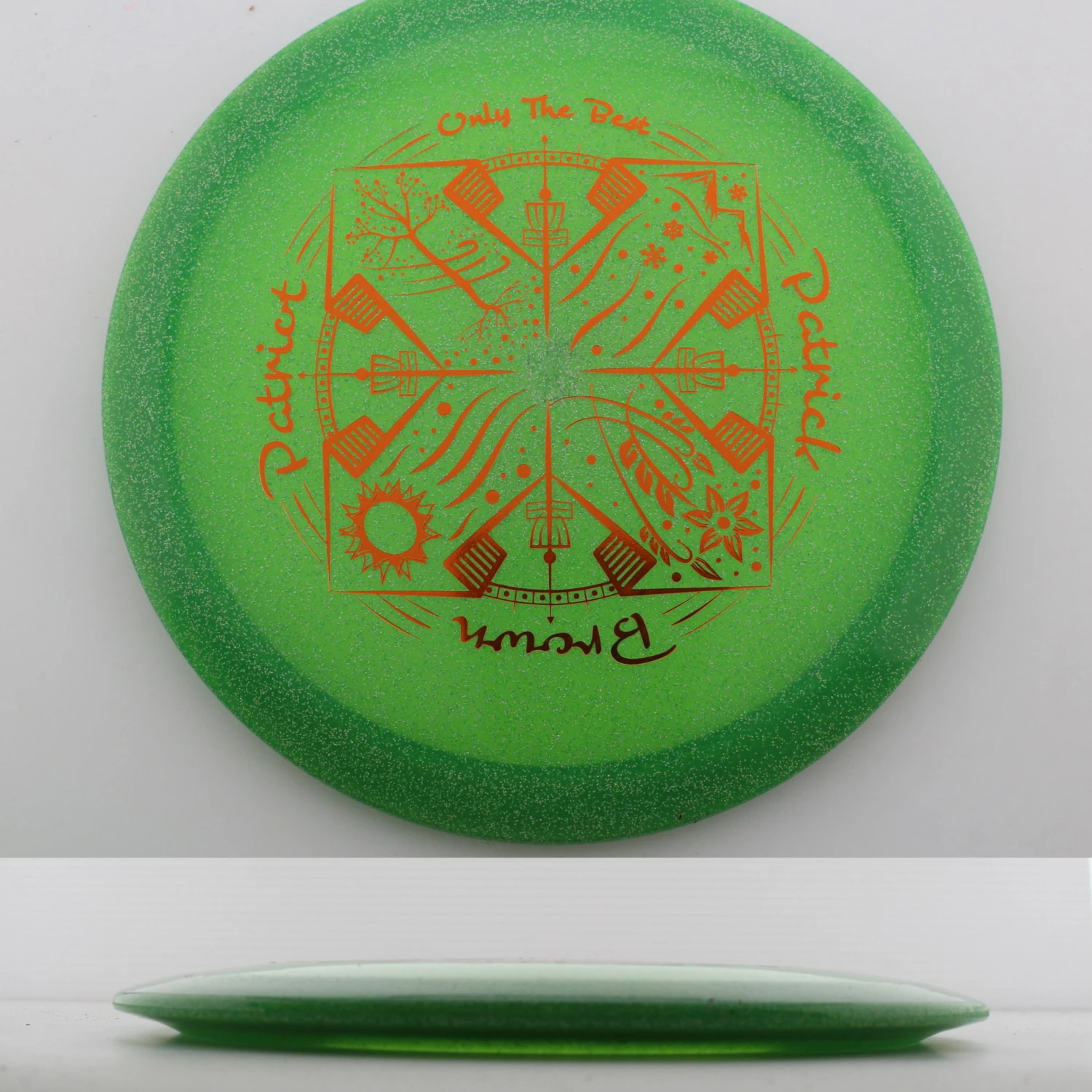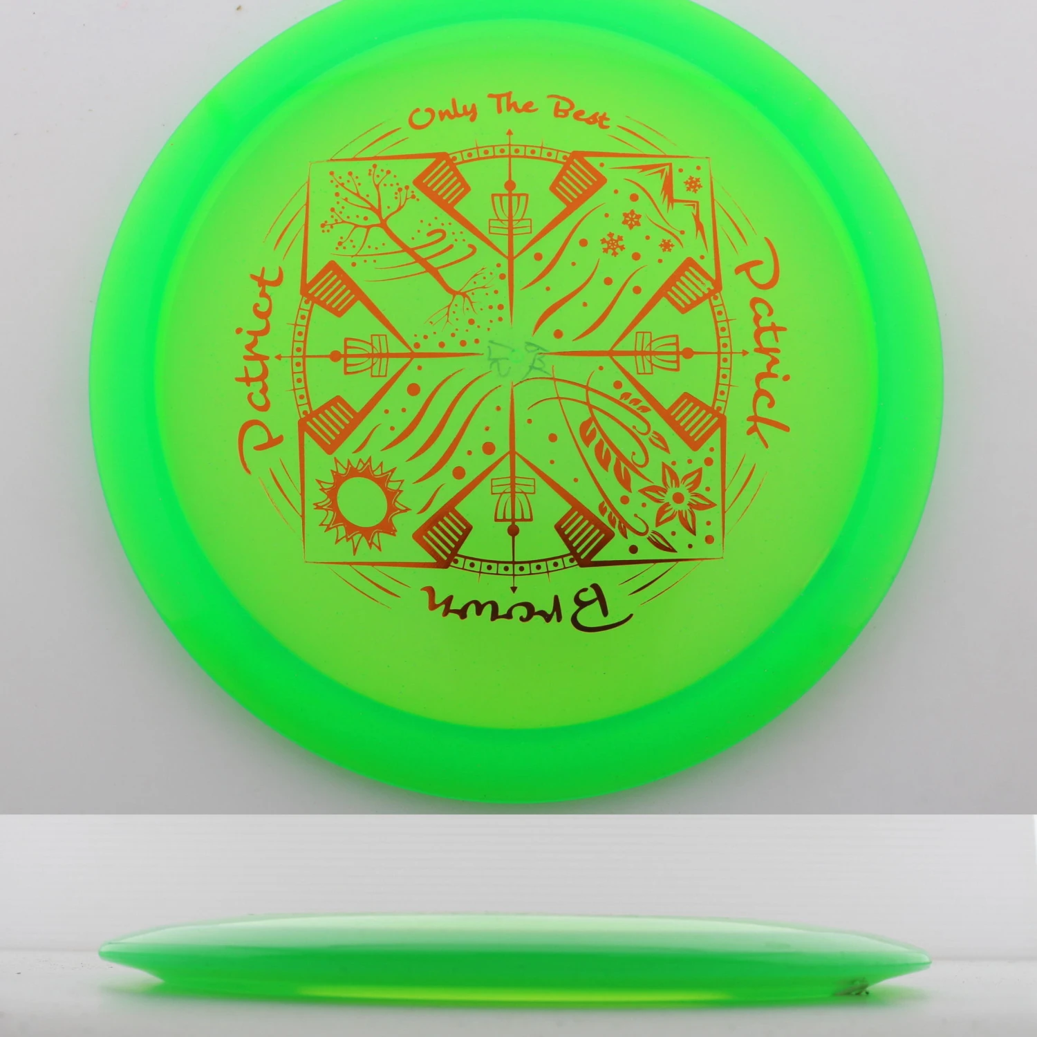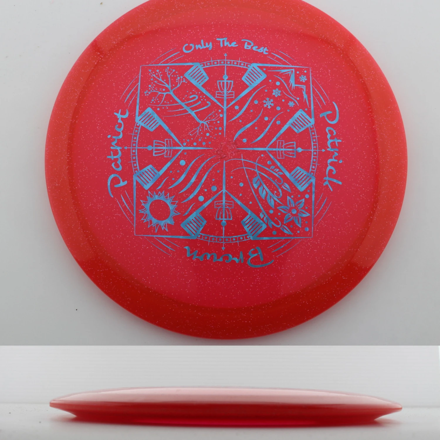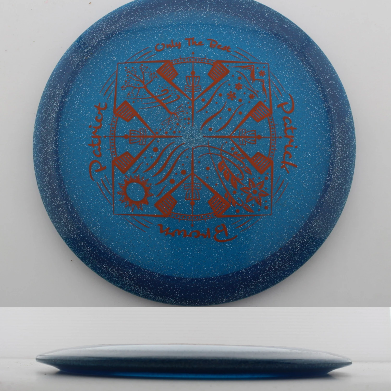 Patrick Brown Patriot – The Patriot is a super straight flying fairway that is perfect for hyzer flips that need to fly straight. This run we have found to be slightly more stable than some of the other runs of Patriot in the past. The Shattered Sparkle plastic is a great feeling run of plastic that has a little bit of added stability. This run is going towards Patrick Brown’s 2022 tour season with custom artwork by Mark Morris. PB is known for a silky smooth game where he throws some of the best fairway shots in the game. Help support PB during his 2022 Tour Season with the Patrick Brown Patriot today!