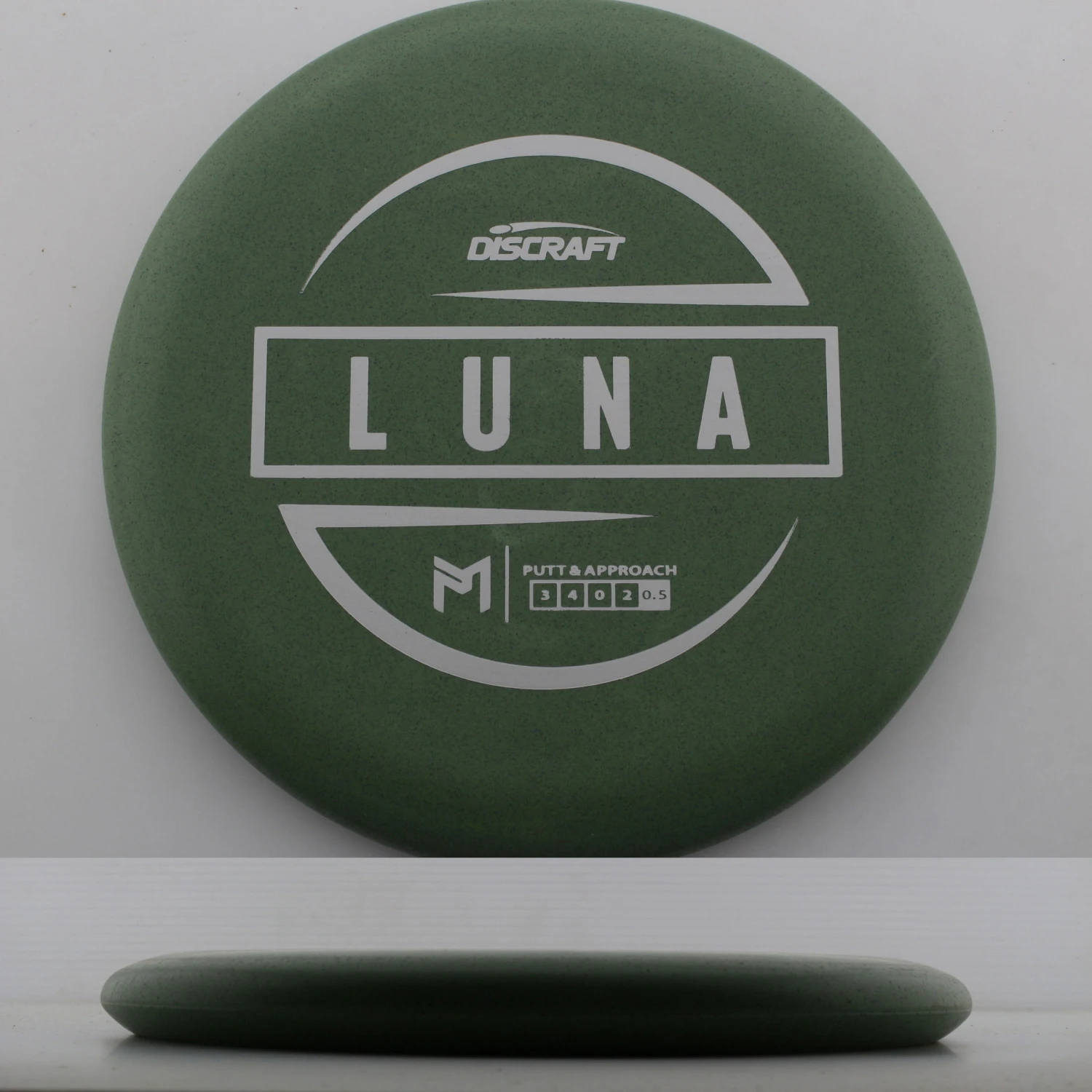 Discraft says this about the mold: “The Luna is a new putter co-designed from start to finish with Paul McBeth. The Luna features a new and unique plastic blend, combining the fan favorites of Jawbreaker and the durability and extra tackiness of rubber. The melding and firming process of these two materials makes for a great feel in the hand and gives the utmost confidence on the course. The Luna is a great neutral flying putter, making it a staple for heavily wooded and open style courses. This control allows The Luna to take advantage of any angle or putting style and showcase it at its full potential. You may have noticed the flight numbers on the Luna have been updated. This is to better reflect the true flight of Luna, the disc mold has not changed.”