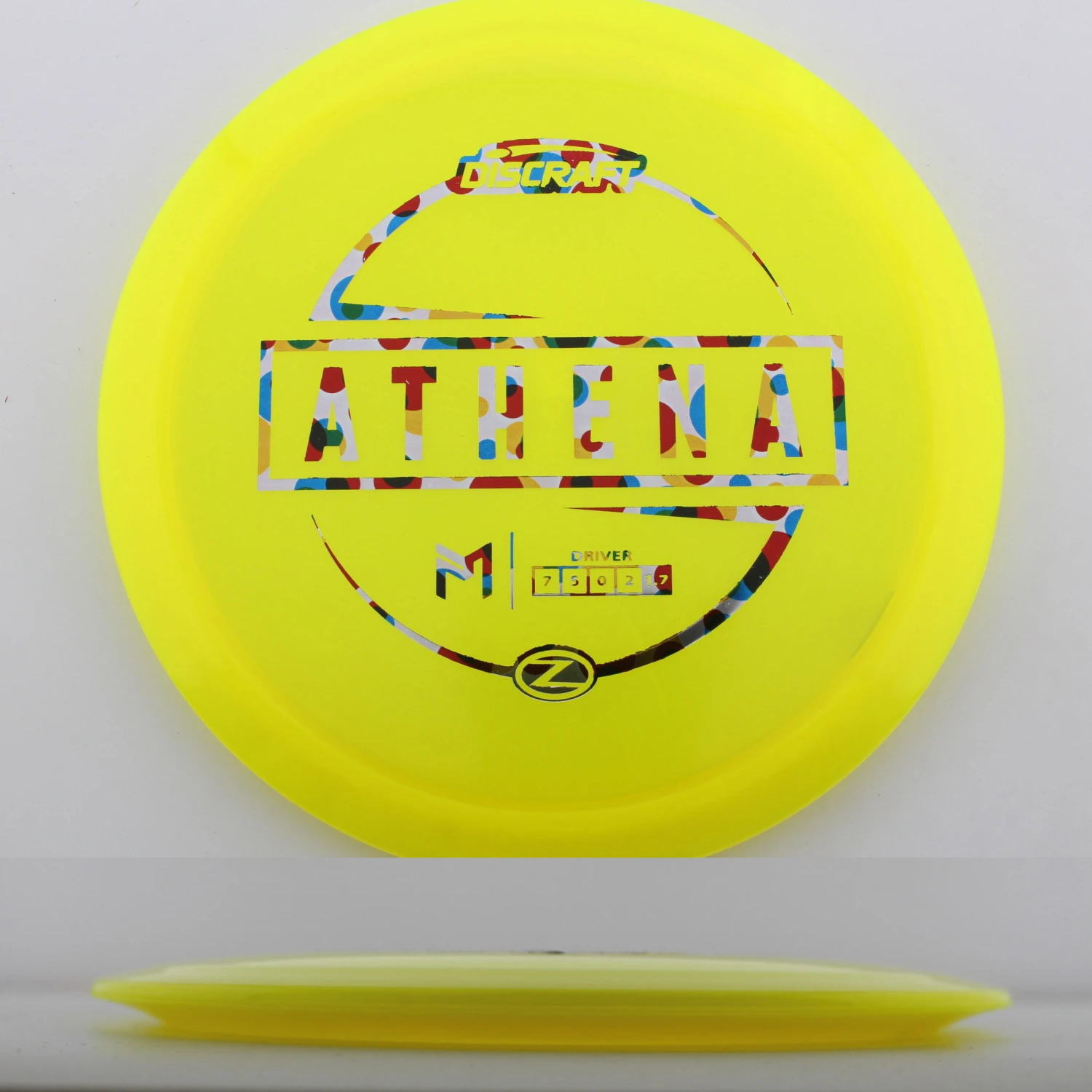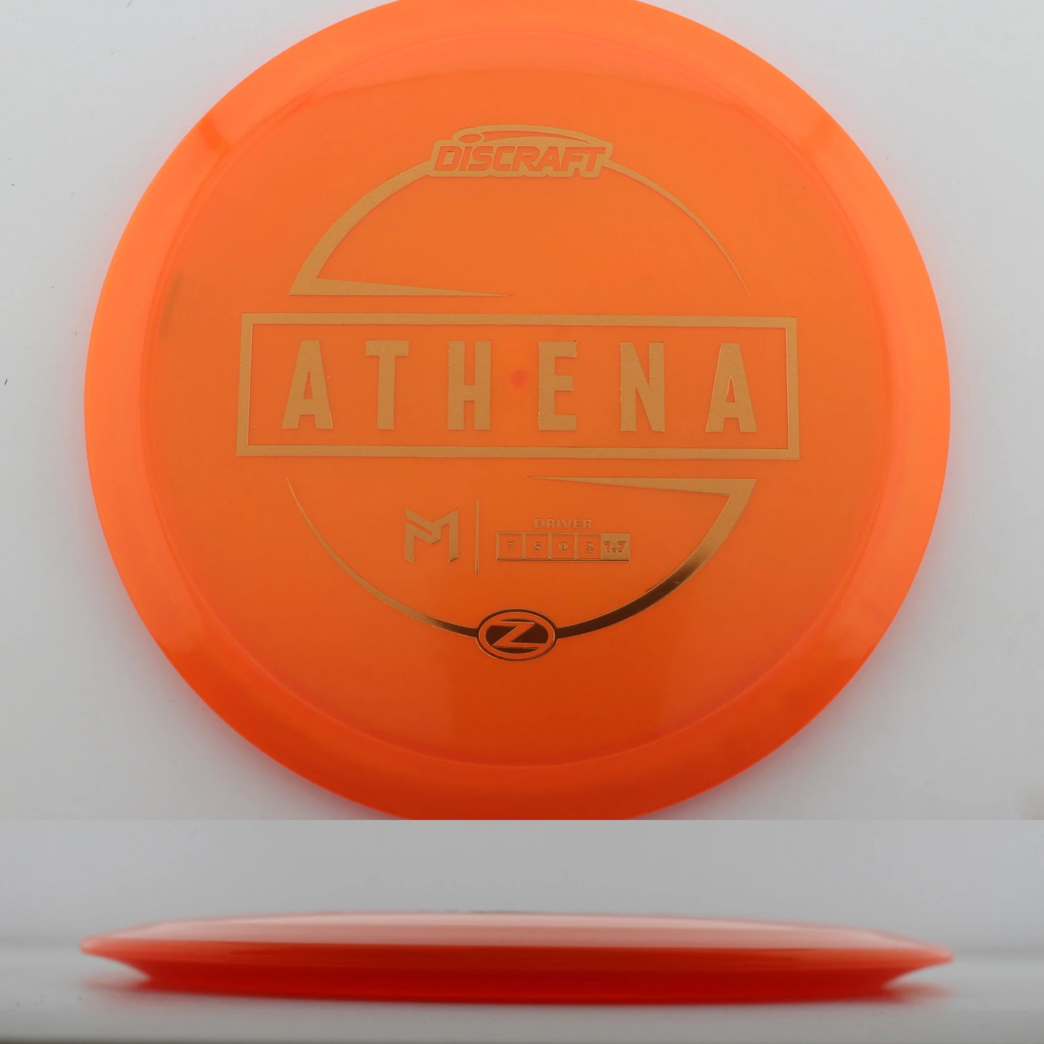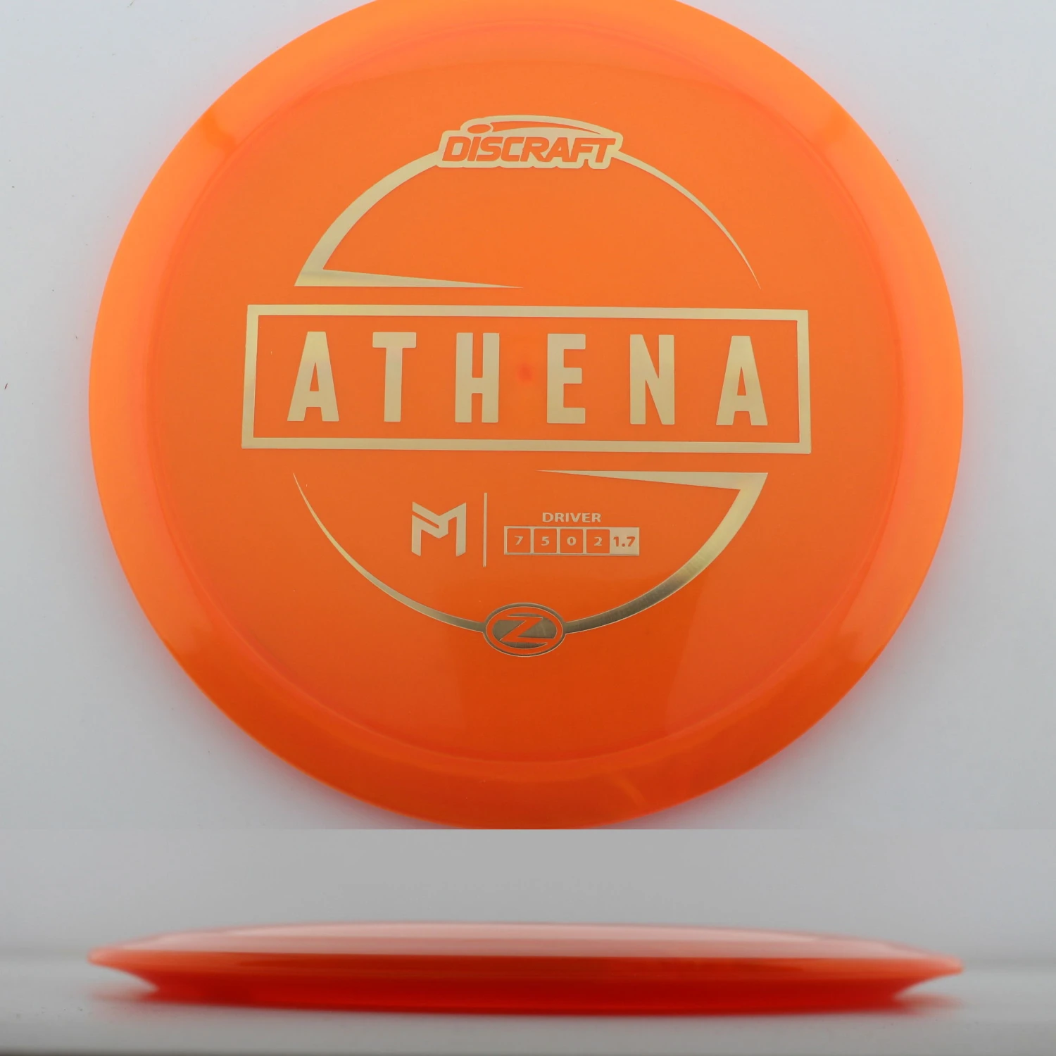 Discraft says this about the mold: “The Discraft Athena is a straight to stable fairway driver and is the 6th disc in Paul McBeth’s signature lineup. The Athena has been described by McBeth as a slower Anax. The Athena has a consistent flight path, making this a very controllable fairway driver. These Athenas were ran in Z Lite plastic for the first time, increasing glide and ensuring effortless distance.”