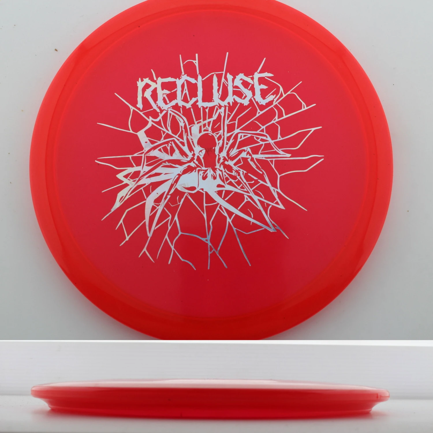 Legacy says this about the mold: “The Recluse is much like it’s counterpart in the Pursuit. The Recluse is a fast mid-range with maximum stability. This disc can be thrown with full velocity like that of a high speed driver but for those mid-range distance shots.The Recluse has a smaller rim configuration and a flat top feel for both a backhand or a forehand player. This disc can handle any head wind shot with confidence.”