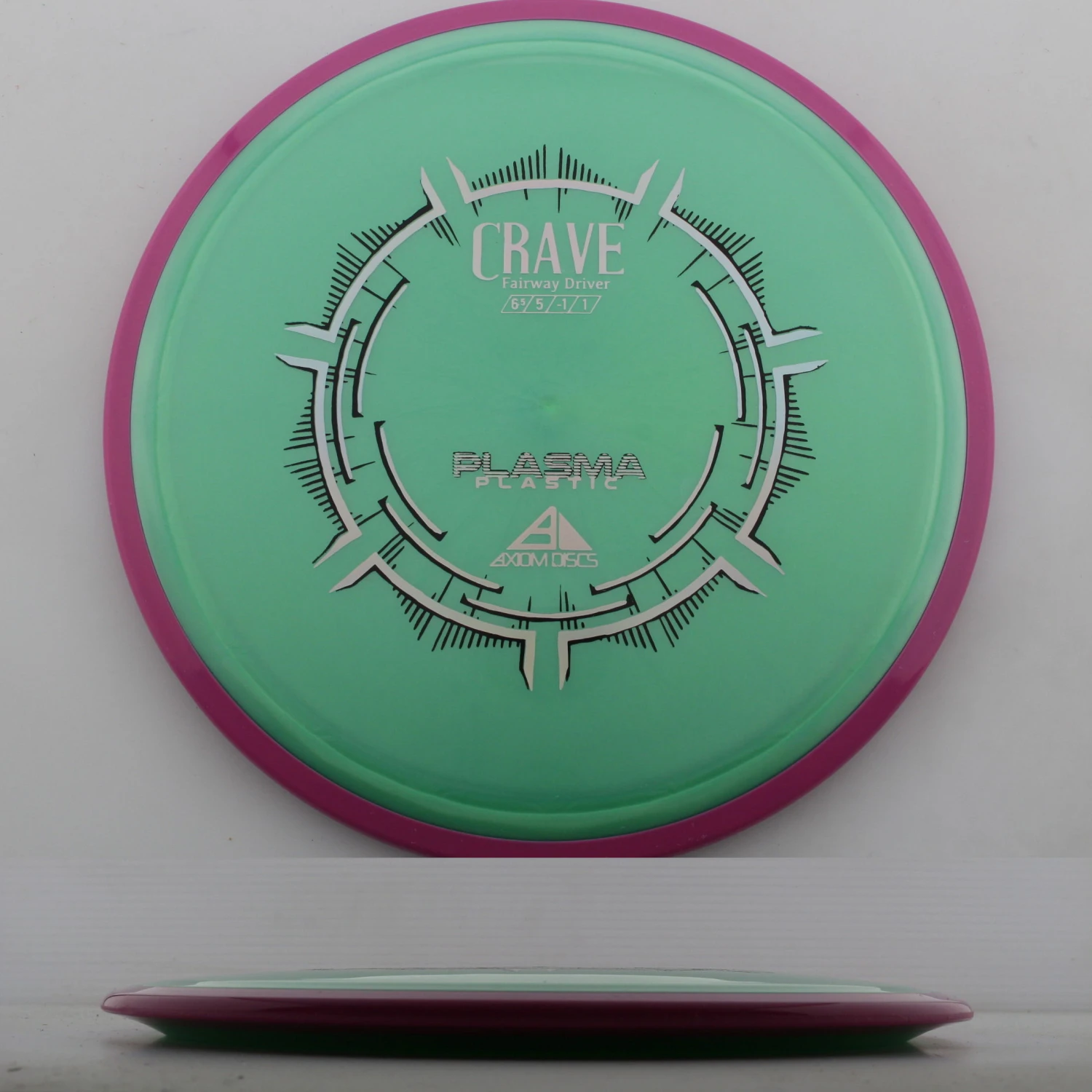 Plasma Crave – The Axiom Crave Disc is a slow, 6.5 speed, fairway driver that slots perfectly between your mids and traditional fairways. This mold gets plenty of glide and goes really far for a disc of its speed. With a touch of turn and a slow fade back, this Plasma Crave disc is perfect for dead straight shots. Describe by some as a beat in fairway out of the box, these discs can be crushed on full power or powered down and still keep a great line. It generally holds any line you put it on and is perfect for carving wooded fairways and open shots alike. Available in a few different plastics you will find an Axiom Plasma Crave disc to suit your liking.