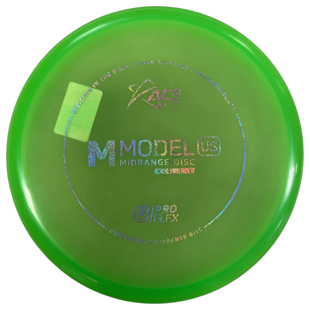 Pro Flex M Model US – The M Model US is a midrange that is part of Prodigy’s Ace Line. These are discs that are produced overseas by Prodigy and this run feels really good. They are flat topped, wide diameter mids that fly great! They have a ton of glide and the disc stays pretty straight for most of its flight. This is a disc that is perfect for those long tunnel shots that makes the woods so fun! This is a disc that all players can find useful, especially in the new ProFlex plastic. Grab a ProFlex M Model US today!