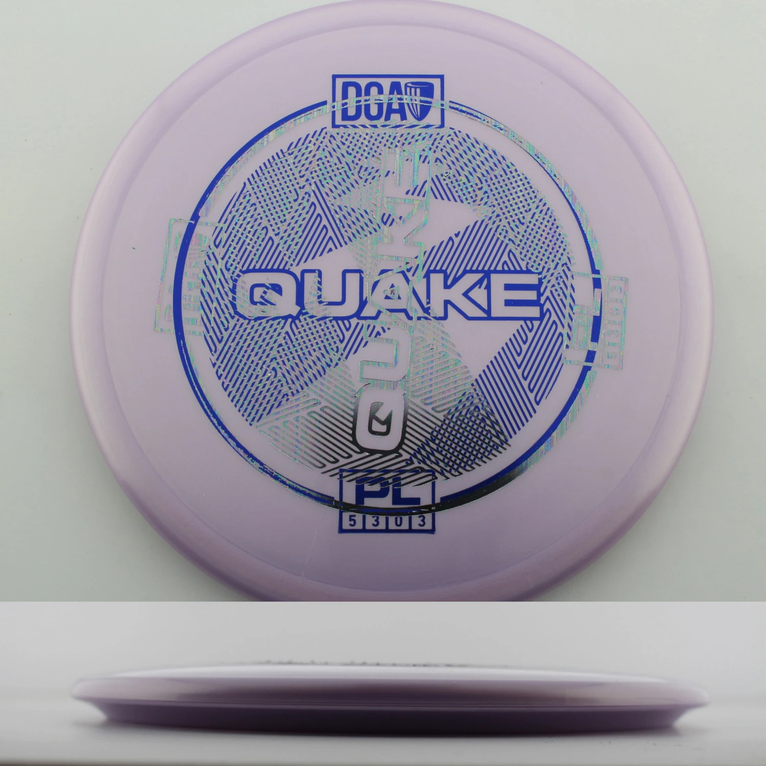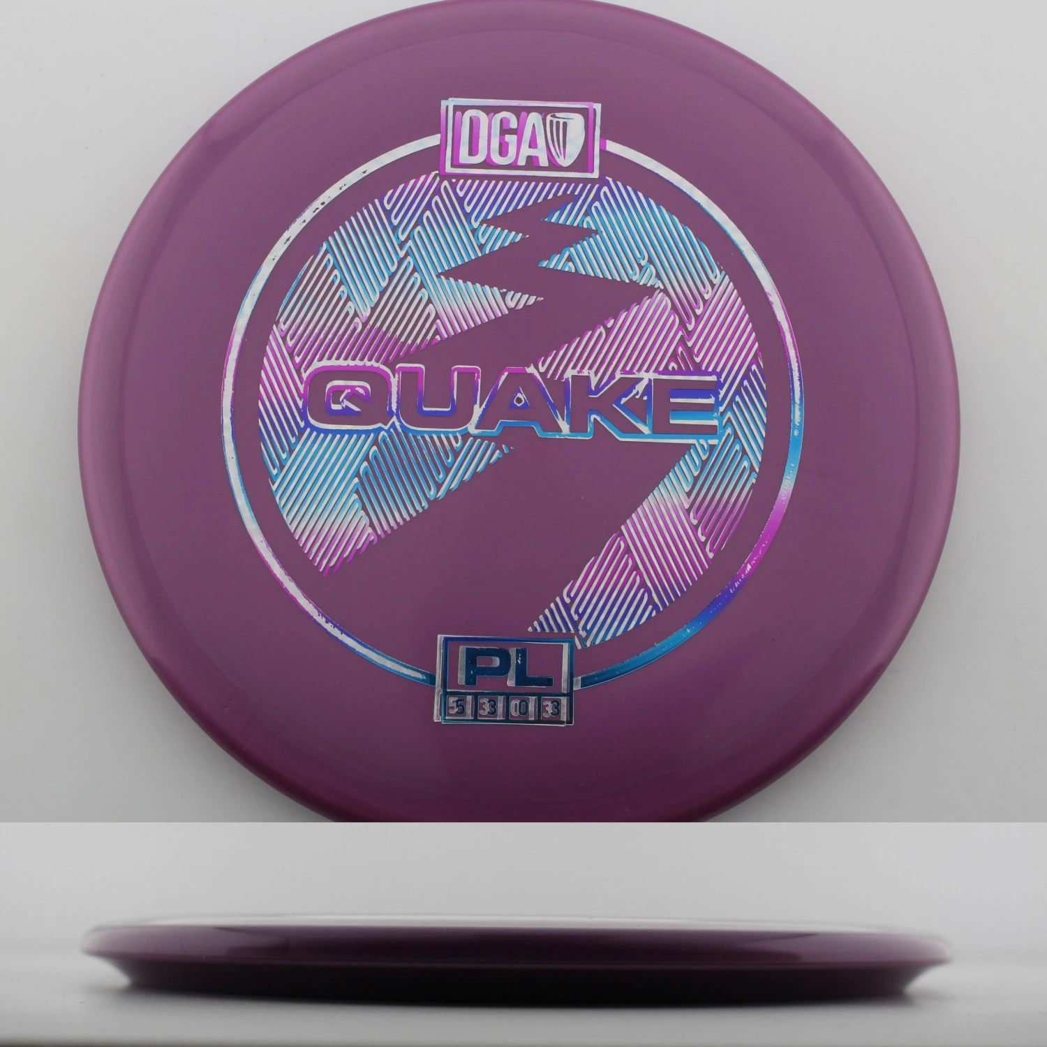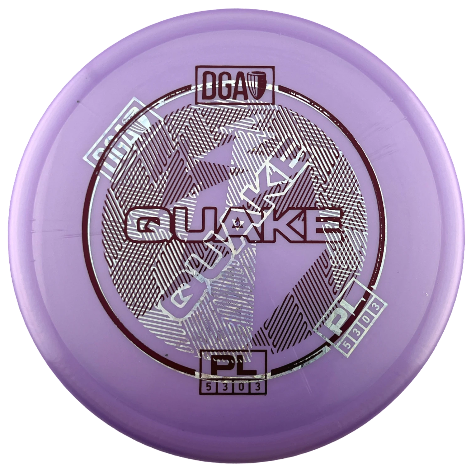 DGA says this about the mold: The DGA Quake midrange disc is a trustworthy overstable midrange that brings confidence in all wind conditions. This disc will hold a consistent flight path when thrown both backhand and forehand. The Quake will keep your midrange game consistent and simple with a comfortable rim and very flat top, which ensures a clean and easy release for all.”