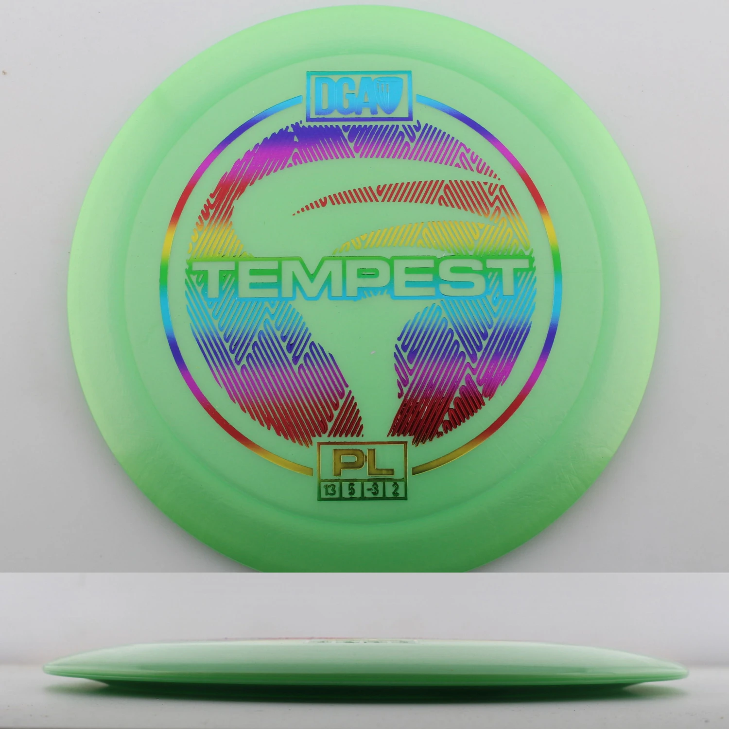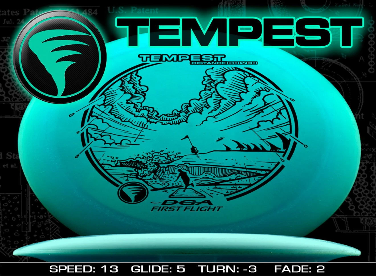 This is what DGA says about the mold: “The DGA Tempest distance driver has exceptional glide and control and is a staple driver for any disc golfers arsenal for drives requiring pinpoint accuracy on even the longest holes. For advanced players, the Tempest will generate predictable high-speed turns plus lots of glide with an added understable finish. Newer players will more easily gain increased distance and longer drives not readily attainable with most distance drivers.”