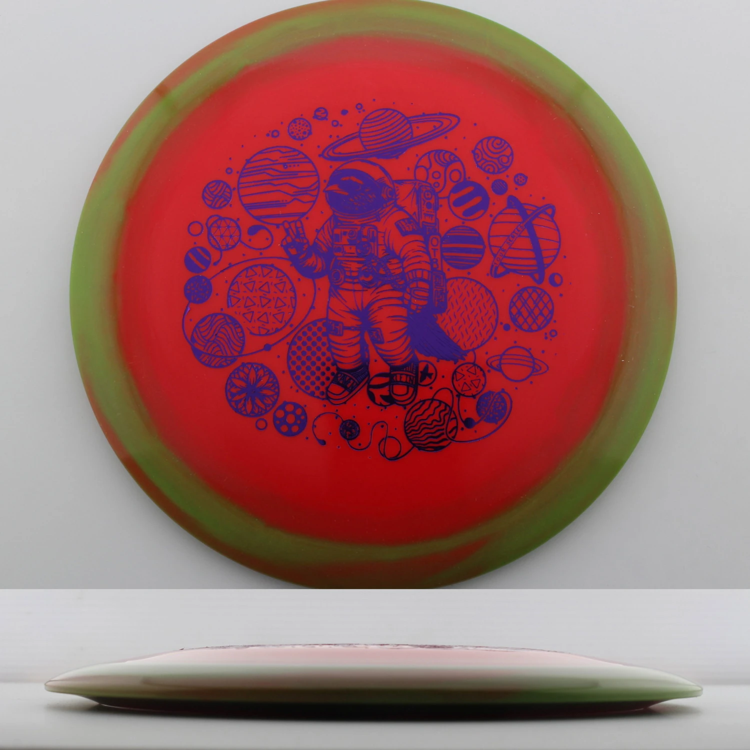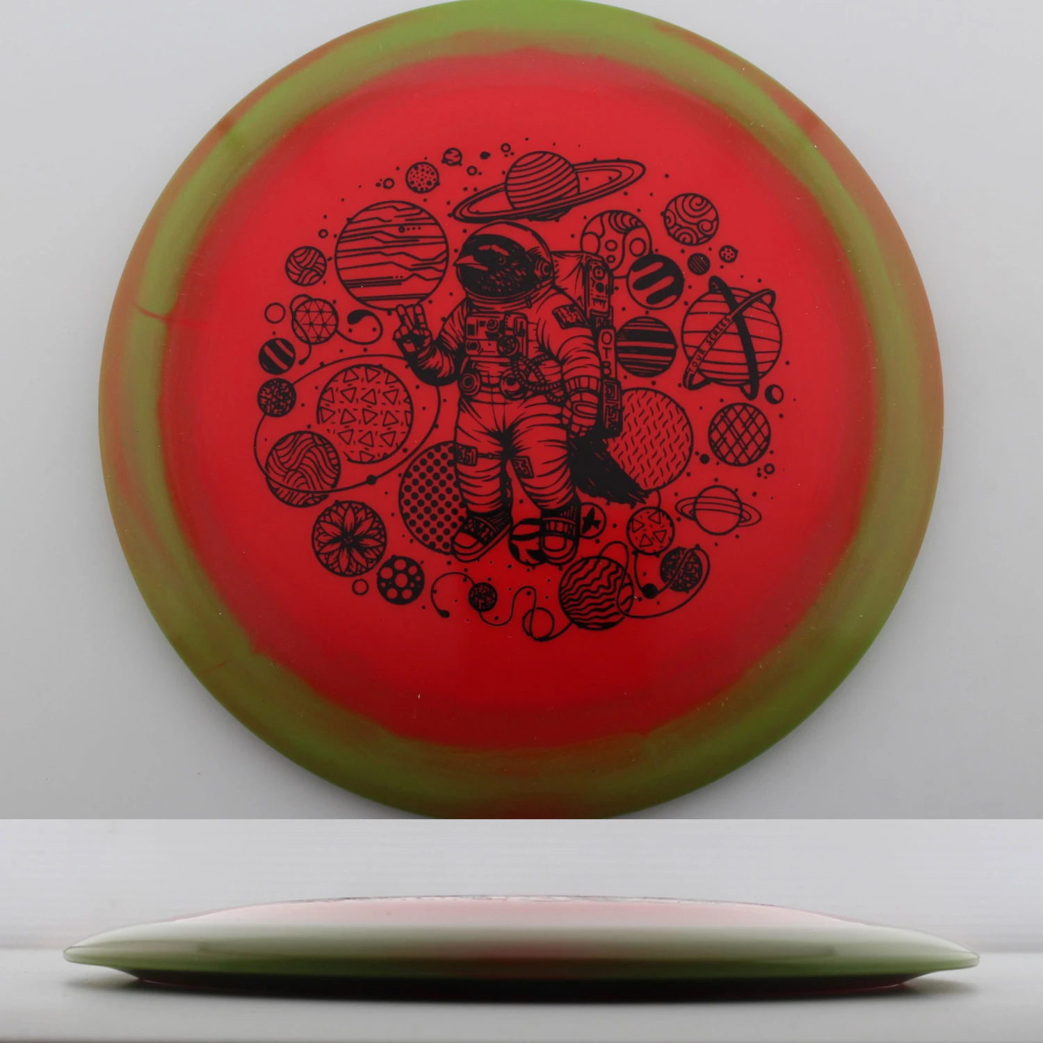 Raven Klein Gold Orbit Jade – The Jade is part of Latitude 64’s “Easy to Use” lineup. The max weight for a Jade is 159g and is well liked by beginners or players with slower arm speeds. The Jade has a very comfortable fairway driver rim and can be easily manipulated to fly on a wide variety of lines. The Jade’s counterpart, the Diamond, is a touch more understable than the Jade. So, if you have tried the Diamond but decided you need something a touch more on the overstable side, try the Jade! This Raven Klein Gold Orbit Jade is a beautiful one to try first!!