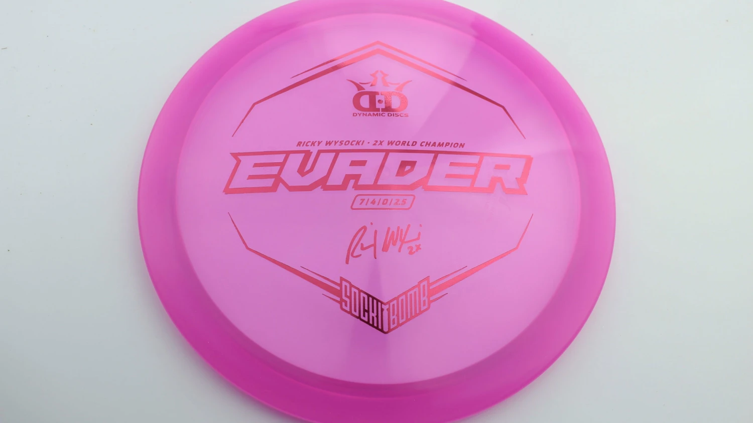 Dynamic Discs says this about the mold: “The Evader is your new go-to fairway driver. It has controllable speed with excellent glide and enough stability to hold the line, even into the wind. The Evader’s 7-speed means that you can count on it to fill the distance gap between your 5-speed midranges and 9-speed fairway drivers, like the Escape or the Getaway. The Evader is extremely versatile, and its consistent fade means that you can work it on anhyzer and know that it will get back to flat. If you’re looking for a workhorse fairway driver, the Evader belongs in your bag.”