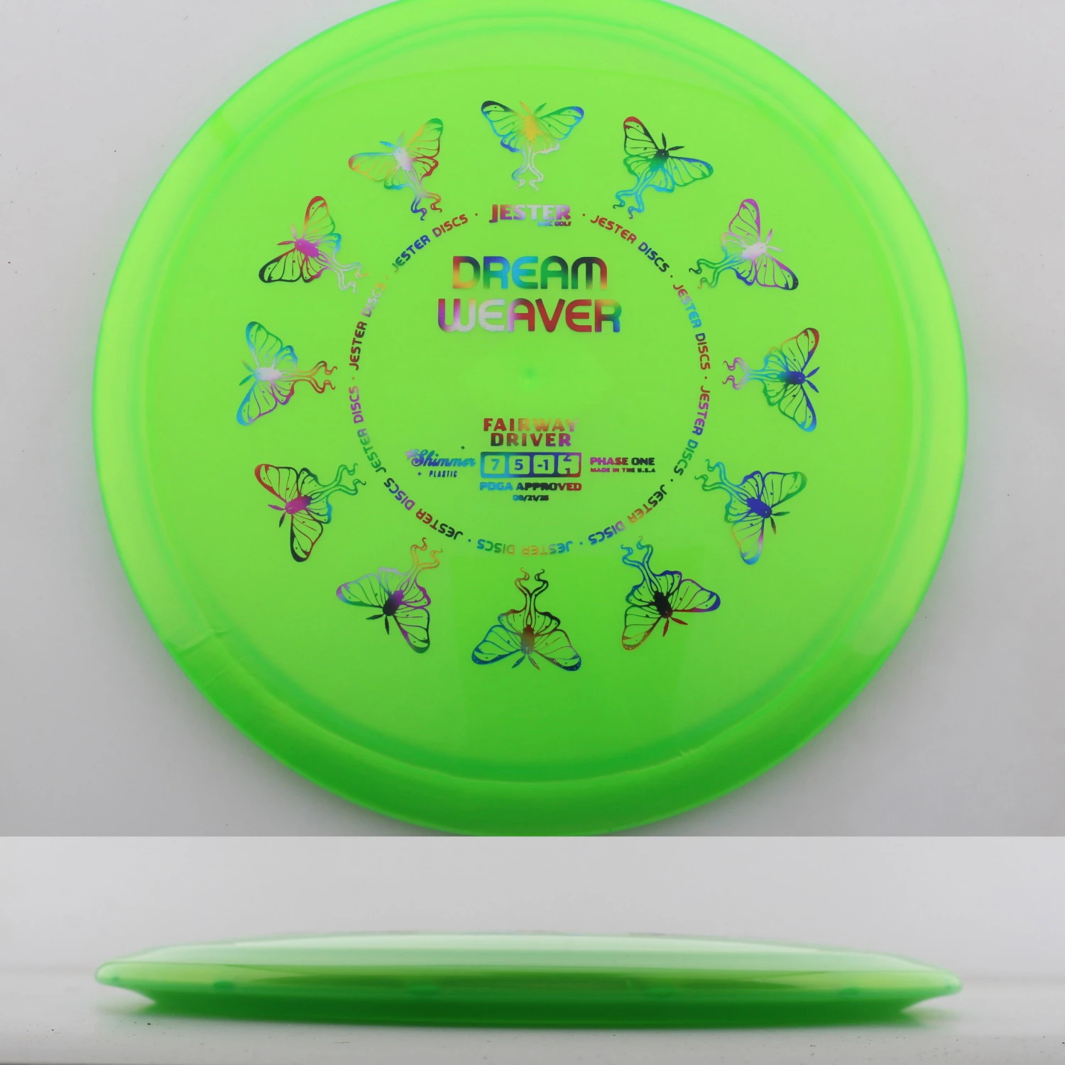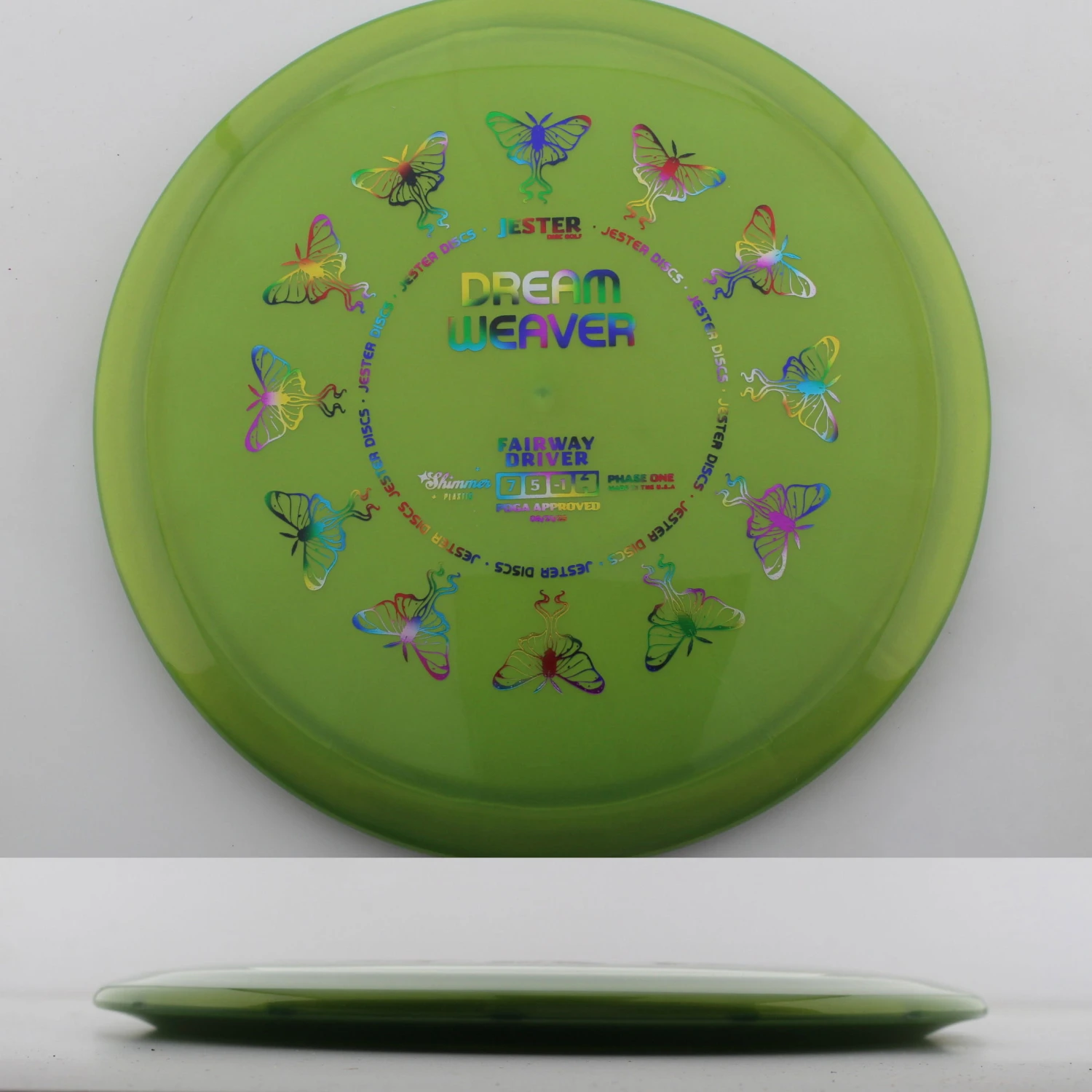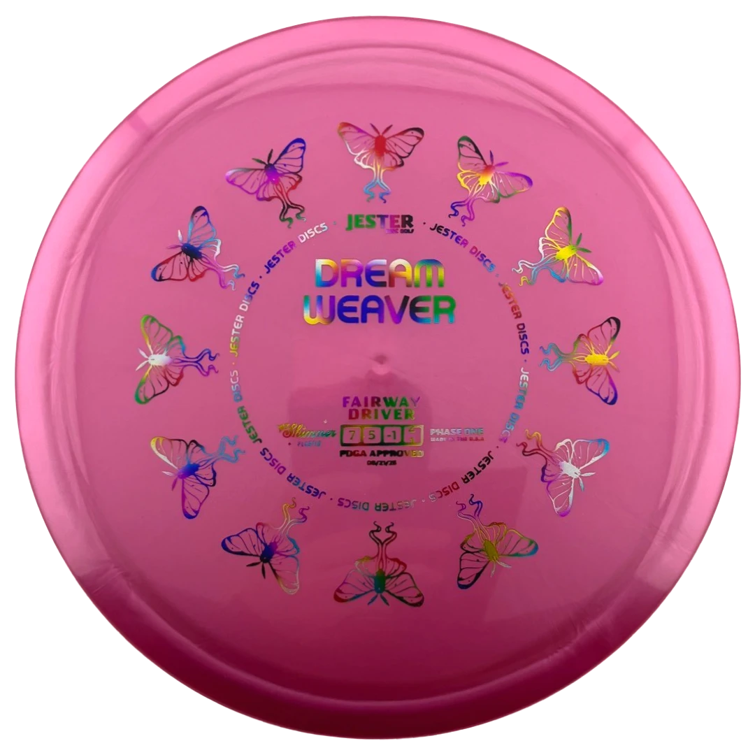 Shimmer Dream Weaver – Jester Discs has been releasing great new discs for the past year. The newest disc in their lineup is the Dream Weaver, a slightly understable fairway driver that can be used by all skill levels. The Shimmer plastic is beautiful and is one of the most durable plastics around. Make sure you pick up a Jester Discs Dream Weaver today!
