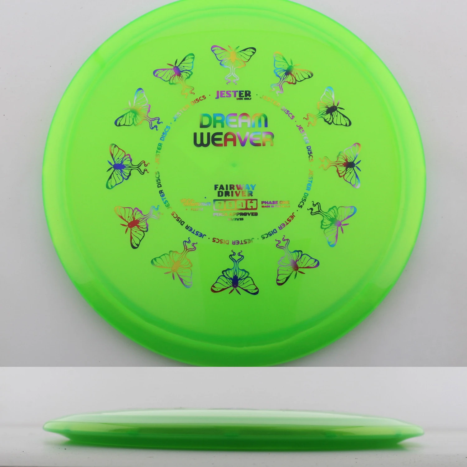 Jester Disc Golf says this about the mold: “Metallic swirls of color and light add a cosmic touch to our flagship driver, Dream Weaver. Take to the skies with this fairway driver, and let it earn a spot in your bag.”