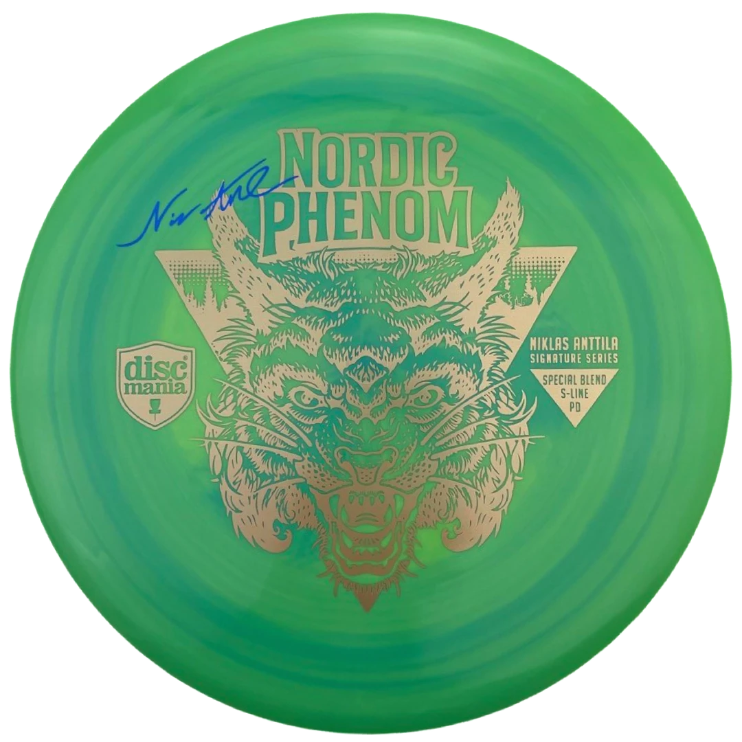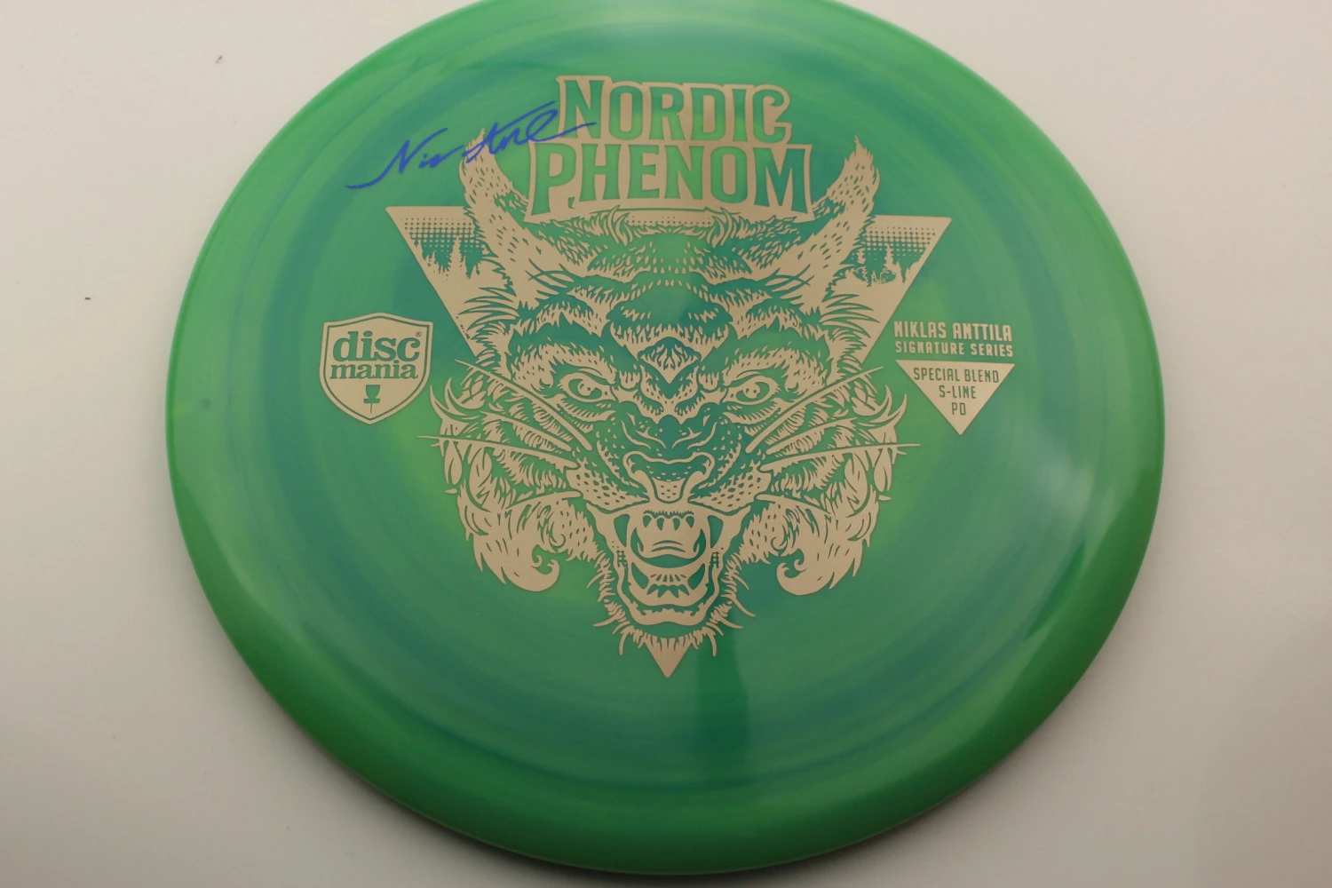Signature Niklas Anttila Nordic Phenom – The PD is one of the best discs to ever hit the market. It is a disc that is leaned on by elite players all over the world, it has that perfect amount of stability to really rip on both forehand and backhand drives. This run is the Nordic Phenom a Signature disc for up and comer Niklas Anttila. The S-Blend plastic has an amazing grippy feel in the hand and this run helps support the rising phenom Niklas Anttila. Make sure you grab the S-Blend PD Nordic Phenom today!