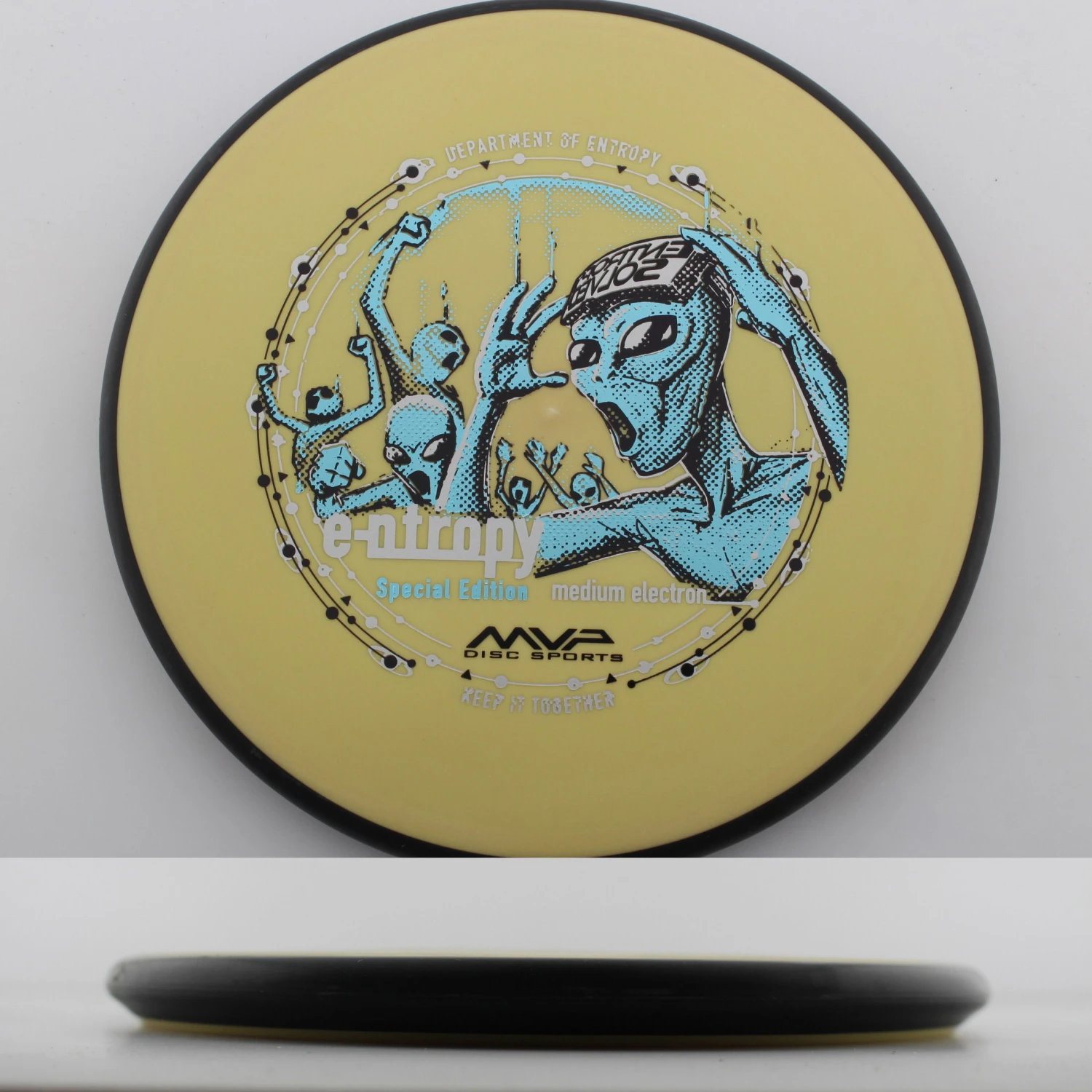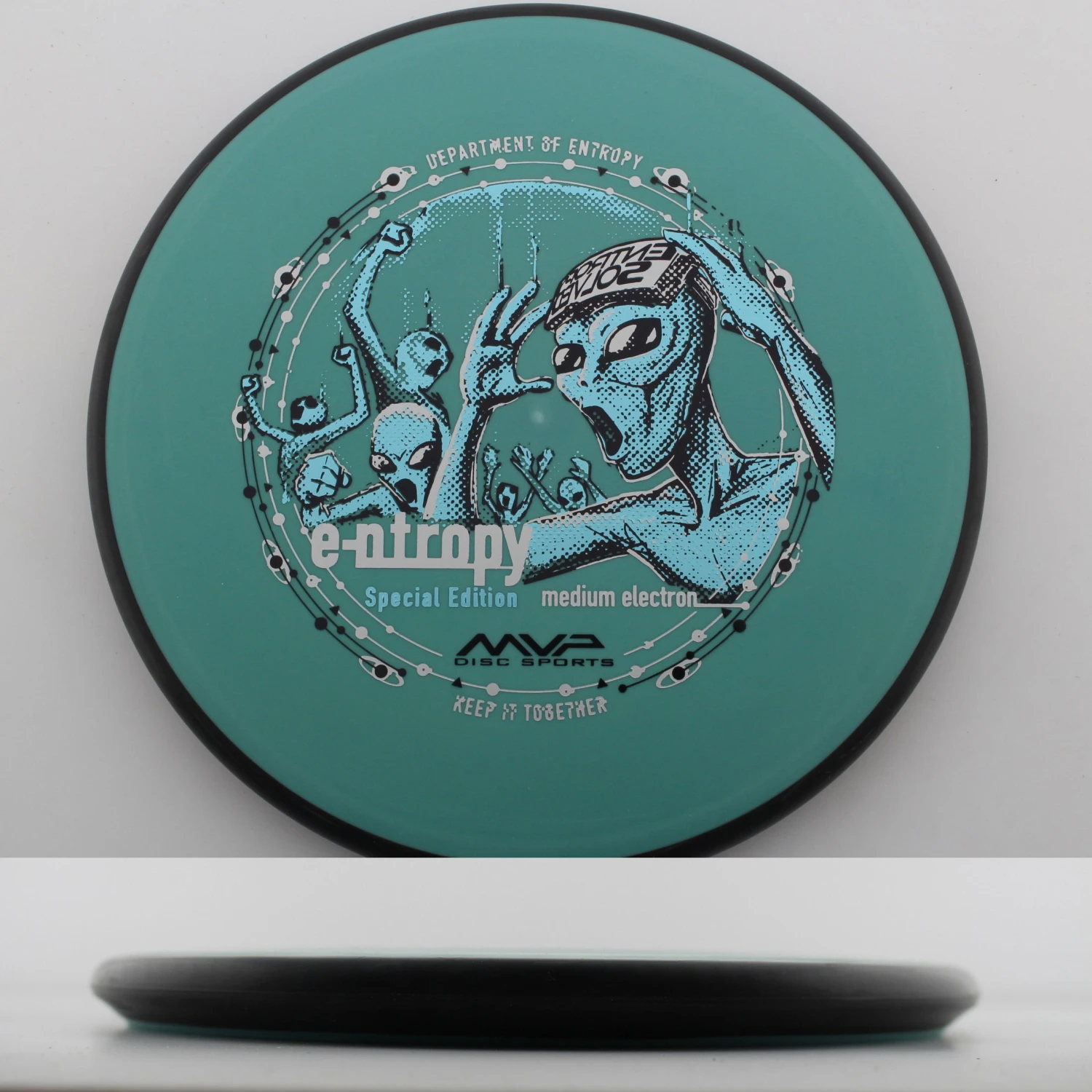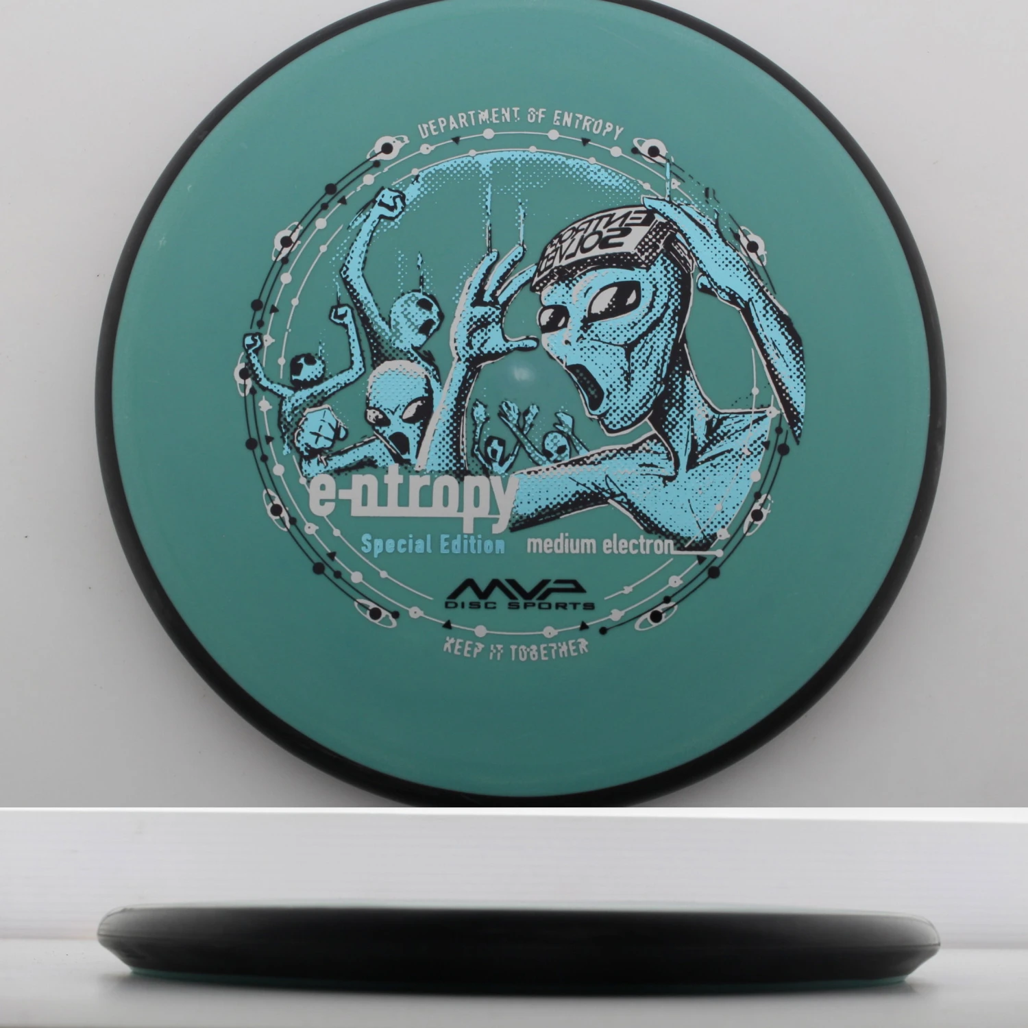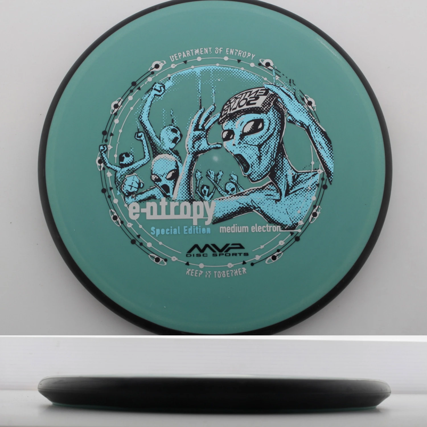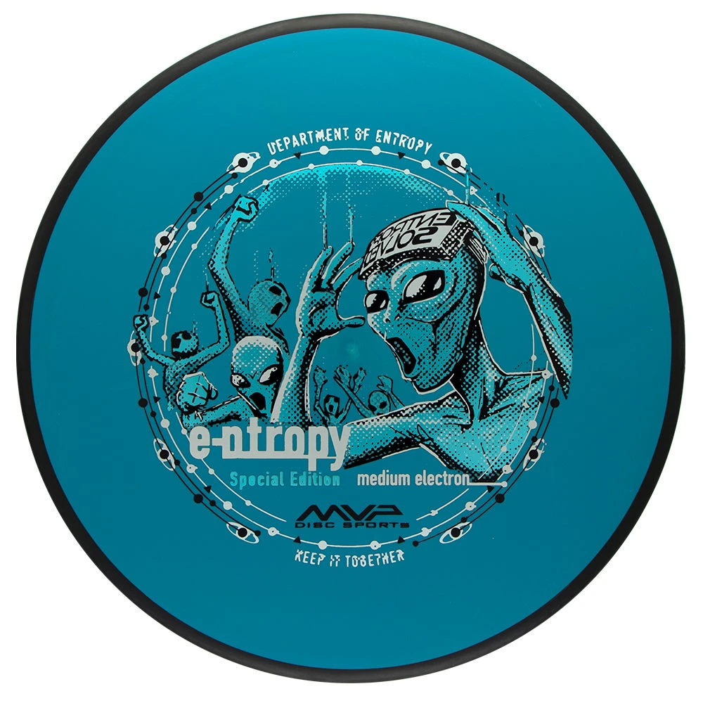 Special Edition Electron Entropy – A sweet disc to the MVP lineup in April 2019, this feels like a great compliment to Axiom’s Envy. The Entropy has a bit more speed (4 vs 3) and fade (3 vs 2) so it should be a touch faster and more overstable. It is a great controlled approach disc that can handle forehand and backhand power off the tee. James Conrad has made this one of his favorites, even clinching a World Championship throwing this disc. The Electron plastic is amazing feeling in the hand and has tons of grip so this mold is great in all conditions. Up your approach game with an MVP Discs Special Edition Electron Entropy today!