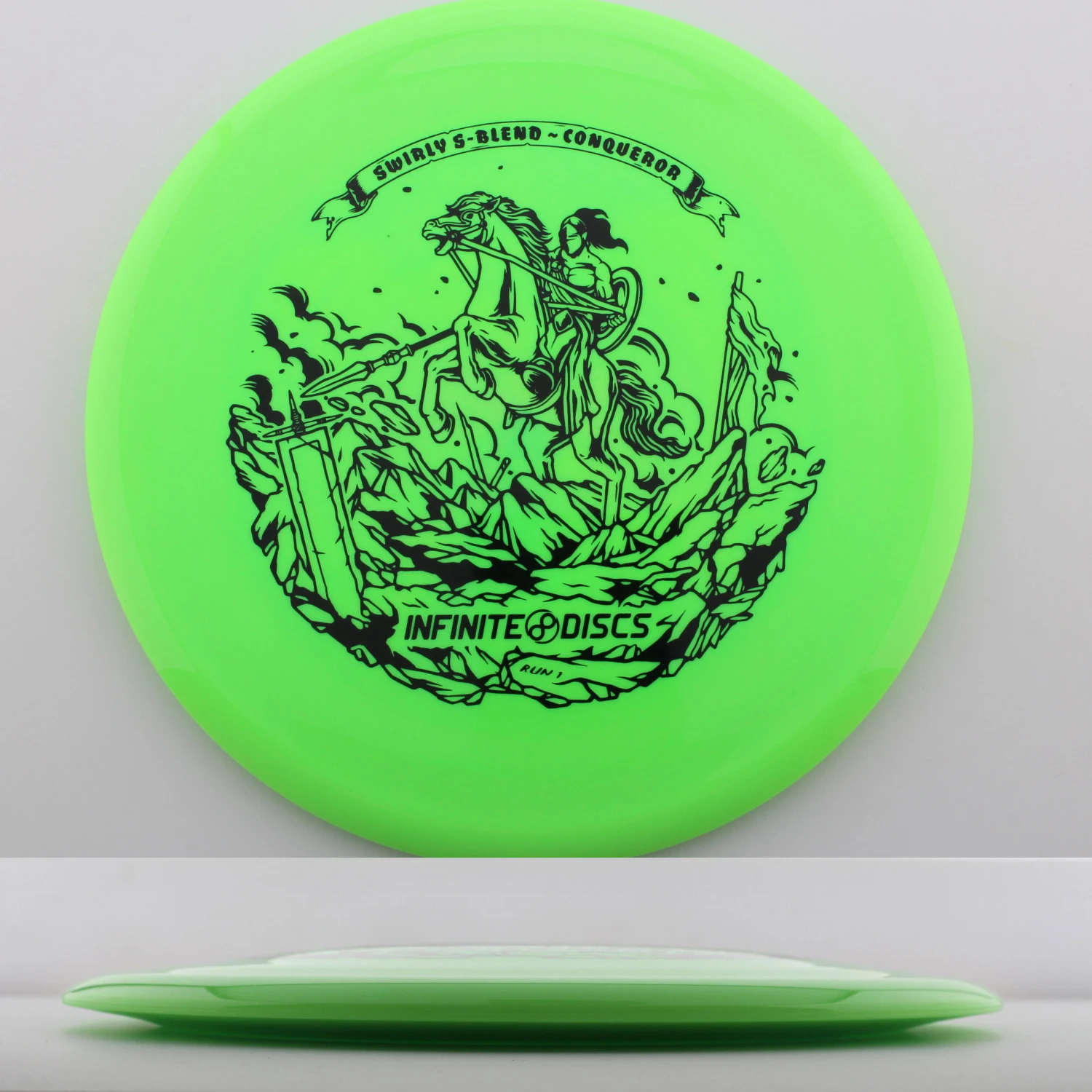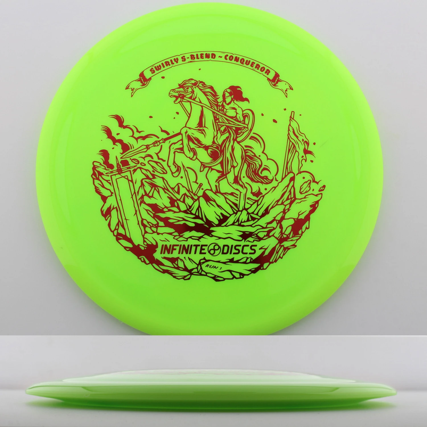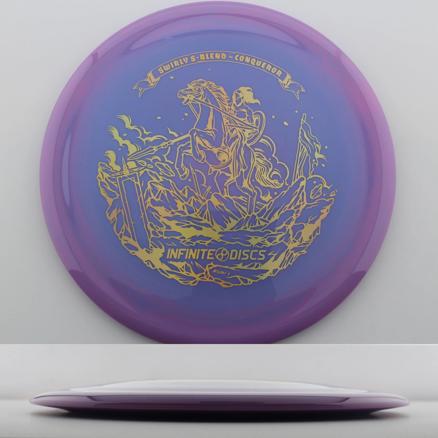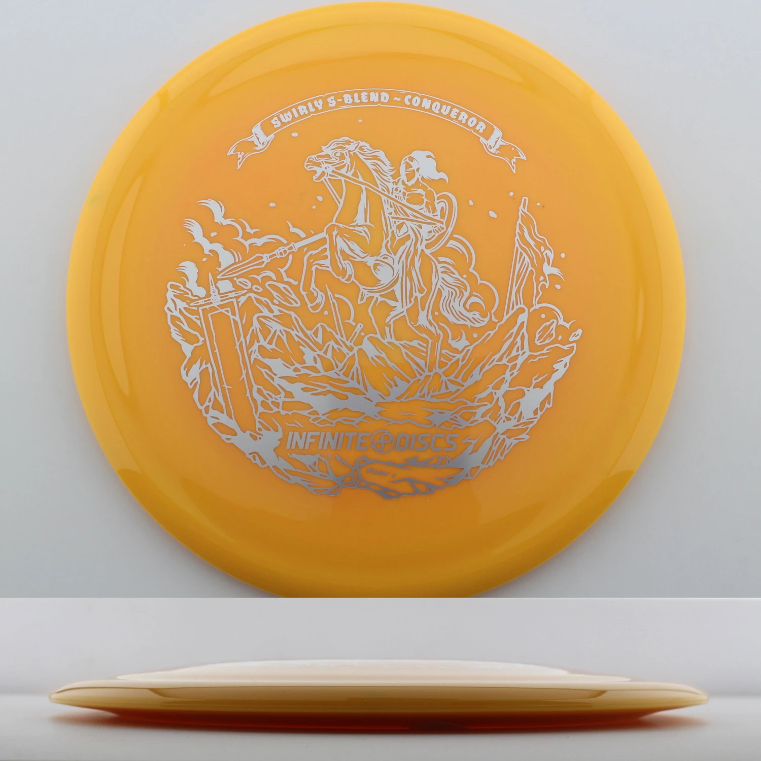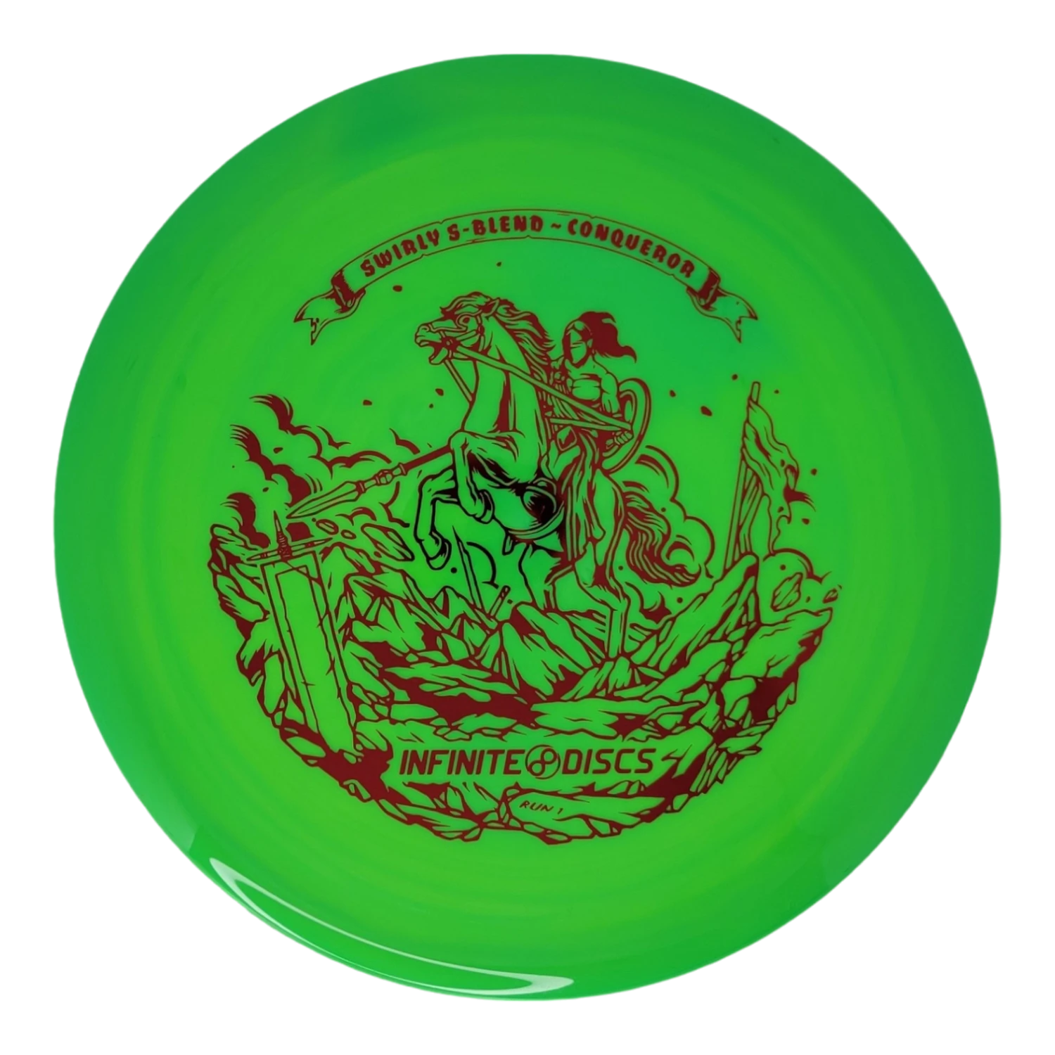 Swirly S-Blend Conqueror – Big time arms need a disc as stable as the Infinite Discs Conqueror. It is fast and overstable, making it perfect for all those power hyzers and forehands. The swirly S-Blend plastic has that great feel that S-Blend is known for, offering grip and durability. This Infinite Discs Swirly S-Blend Conqueror gives a power that forehand players will fall in love with, make sure you grab one today.
