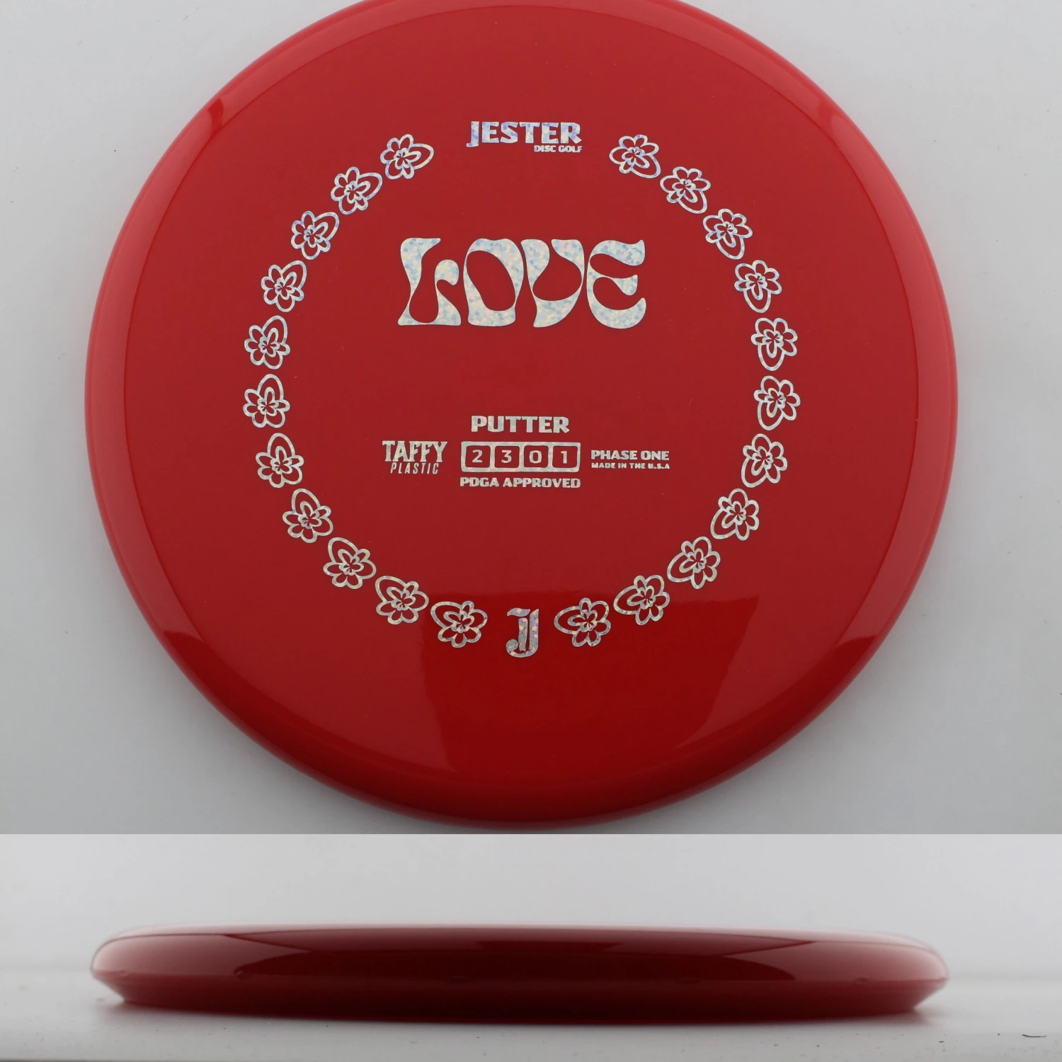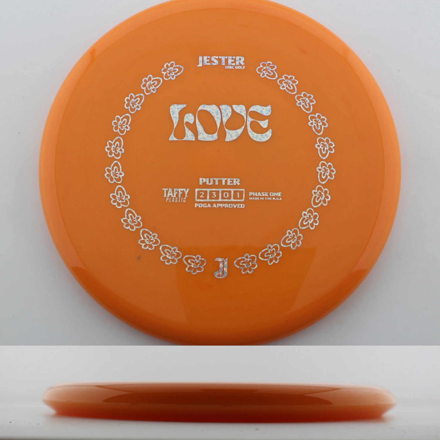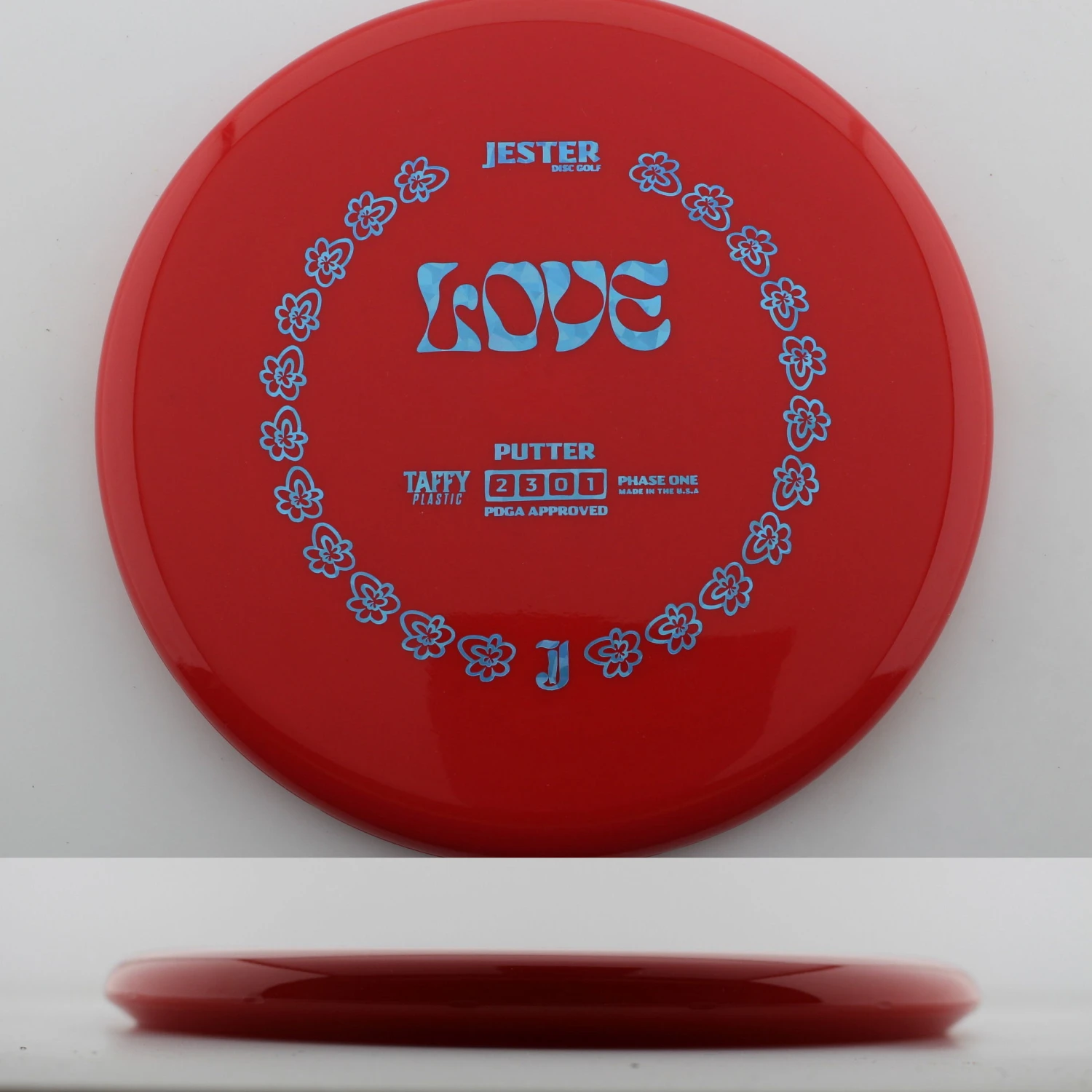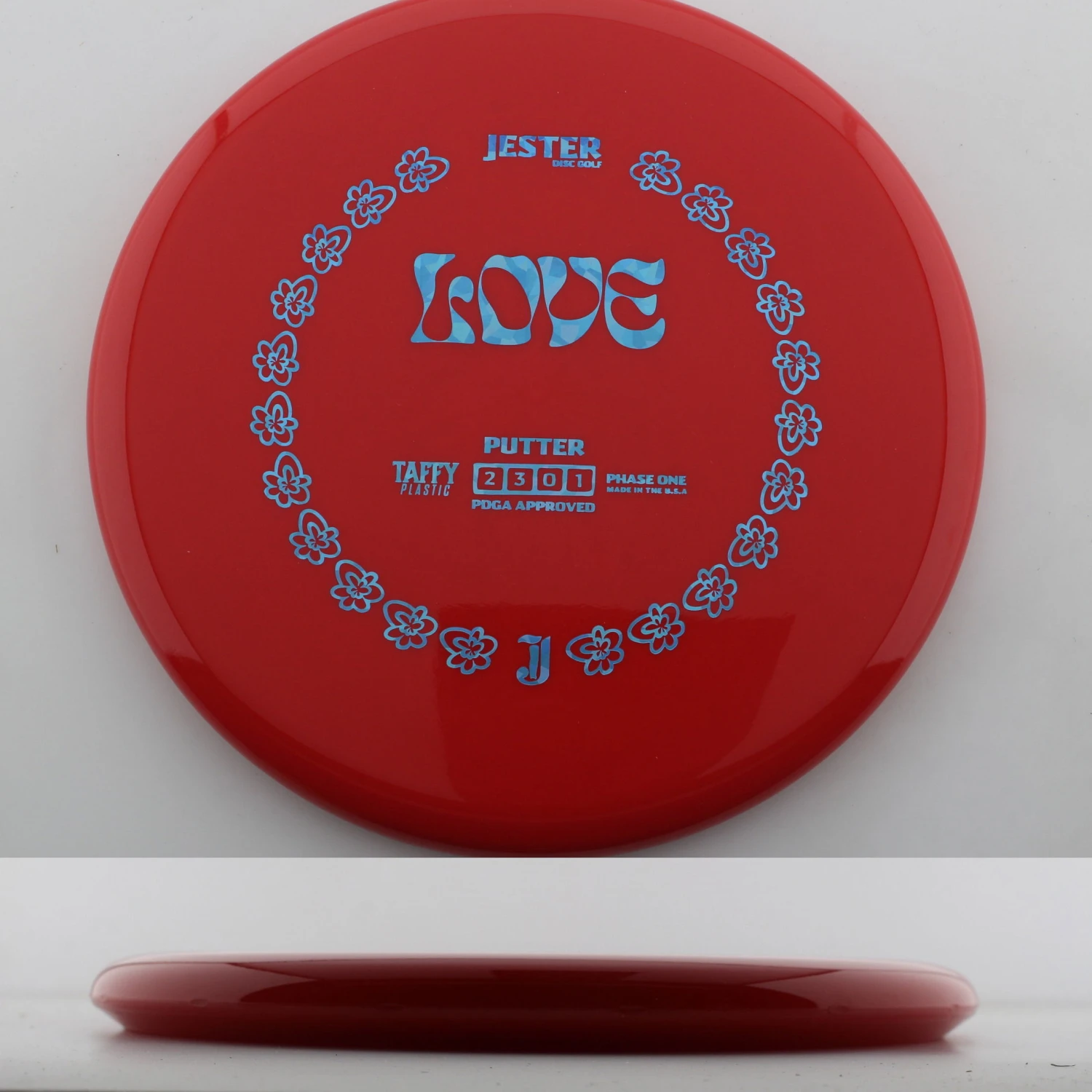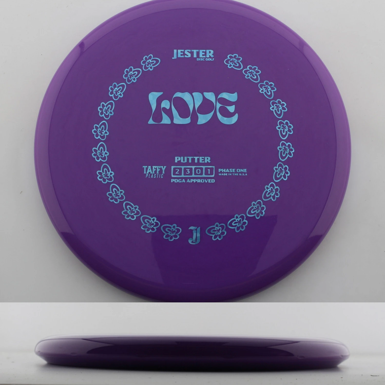 Taffy Love – The Love is a thin, straight flying putter that is great in the circle, off the tee. This is a mold from a company out of Central California, near Fresno, and they have some sweet designs on high quality plastic. This is a great feel disc that can be used by anyone! Grab a Taffy Love today!