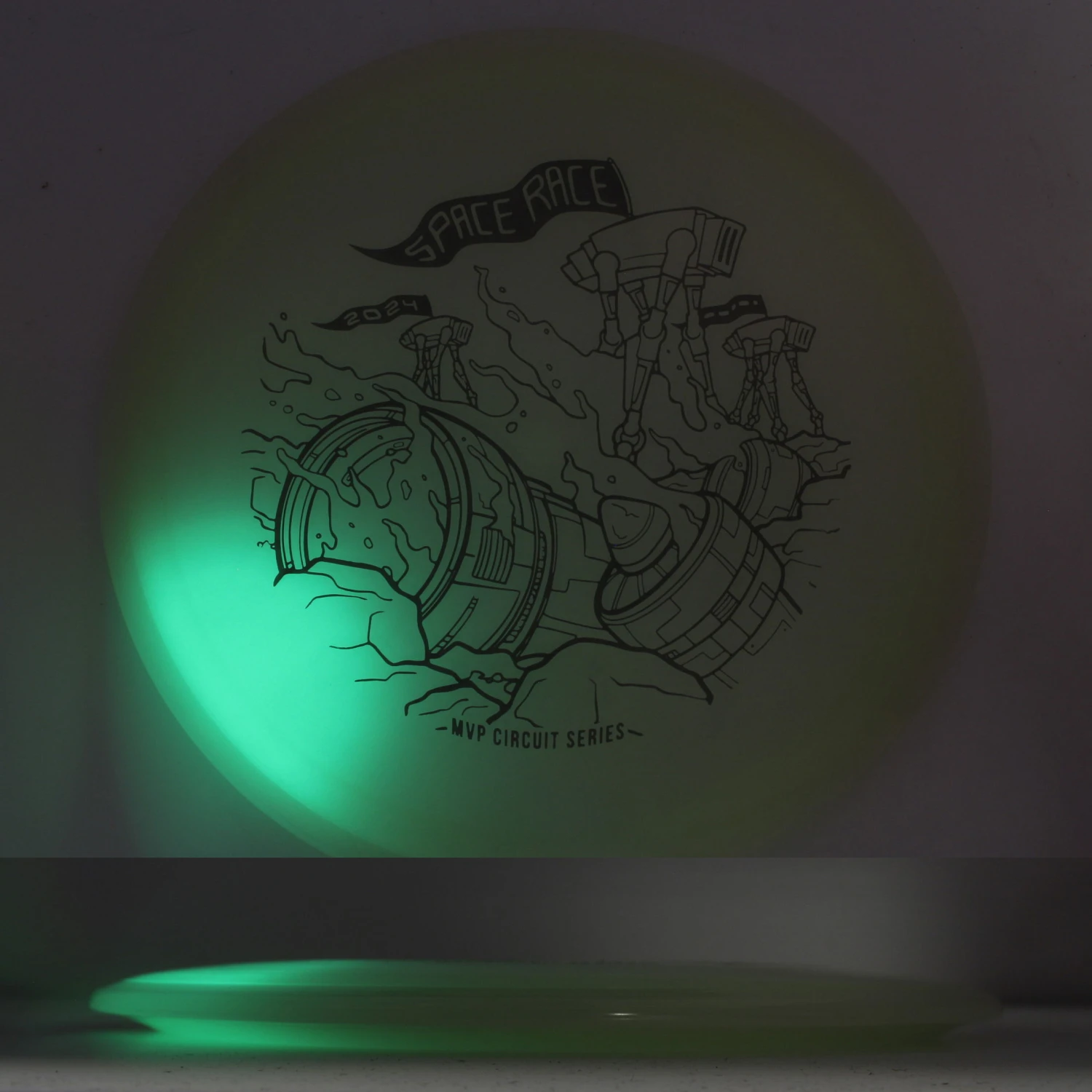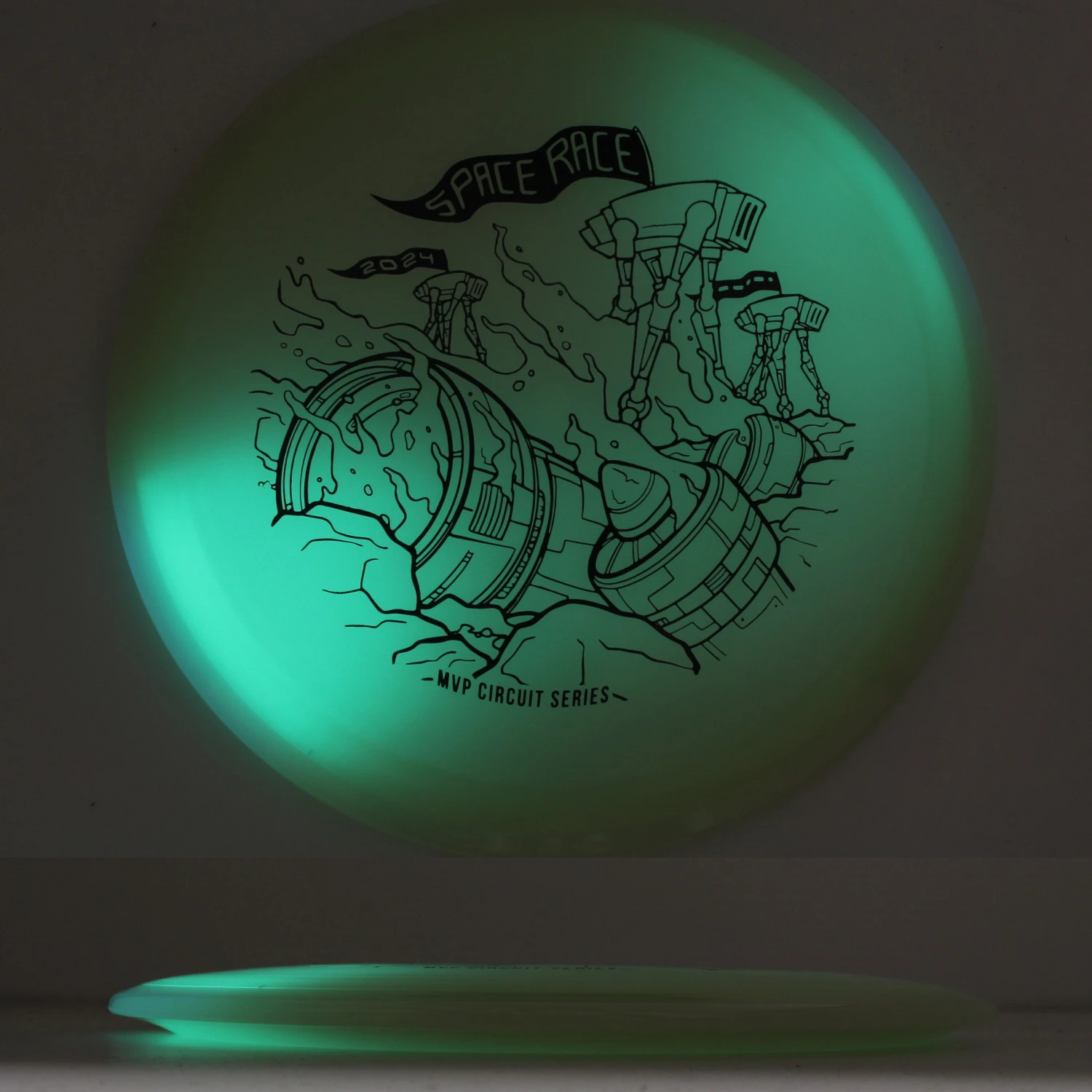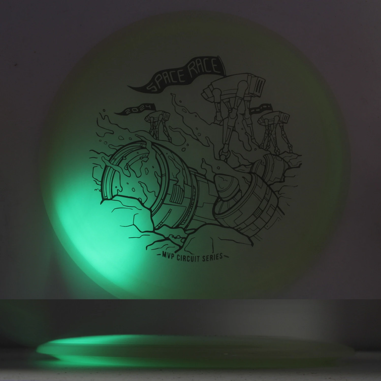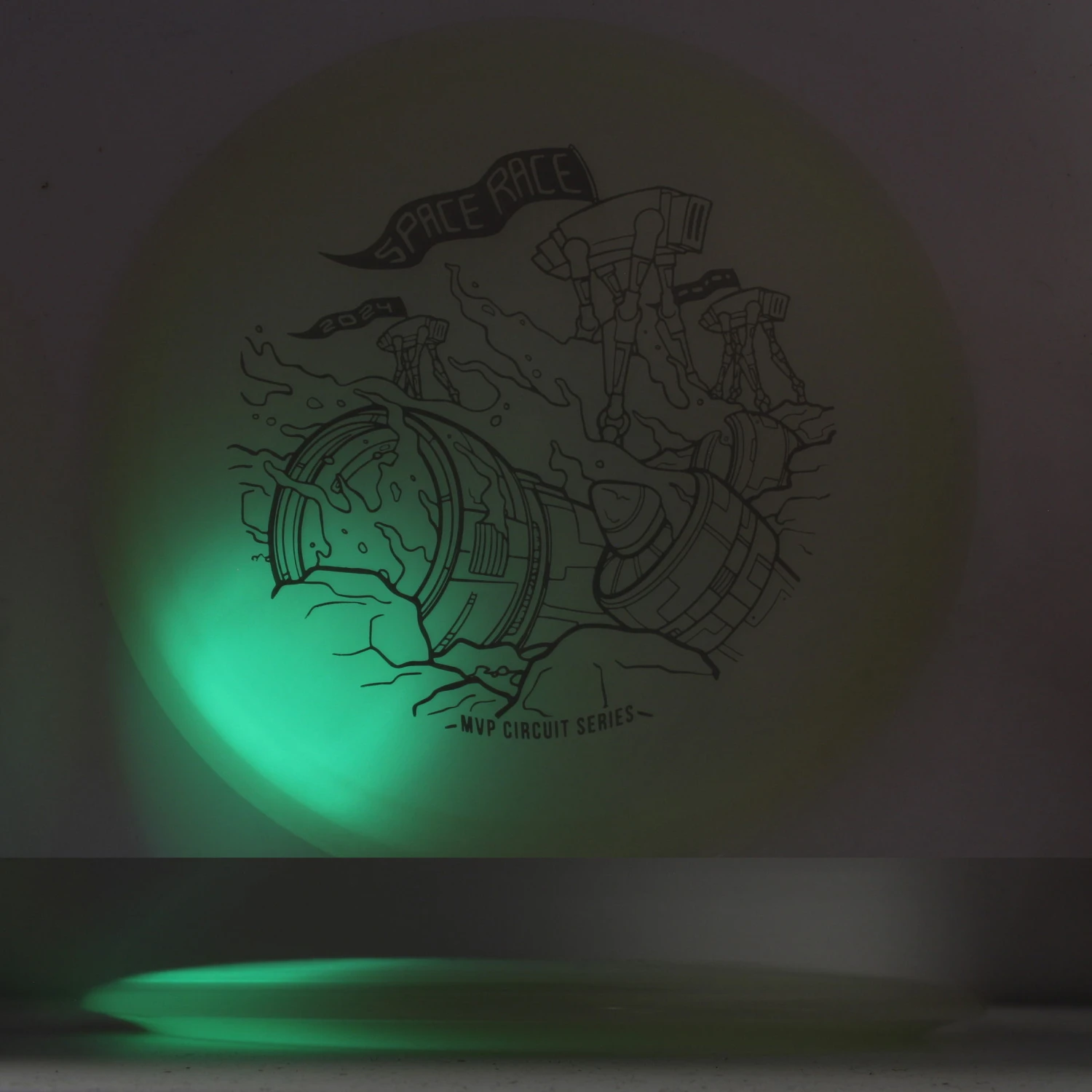 2024 Space Race Total Eclipse Crave – The Axiom Crave is a slow, 6.5 speed, fairway driver that slots perfectly between your mids and traditional fairways. This mold gets plenty of glide and goes really far for a disc of its speed. With a touch of turn and a slow fade back, the Eclipse Crave is perfect for dead straight shots. Describe by some as a beat in fairway out of the box, these discs can be crushed on full power or powered down and still keep a great line. This disc generally holds any line you put it on and is perfect for carving wooded fairways and open shots alike. This is absolutely the perfect fairway for a player of all skill levels, it can be worked on a ton of lines in the woods and is really a perfect slow disc for shaping shots. It is one of the best and most controllable fairways there is.