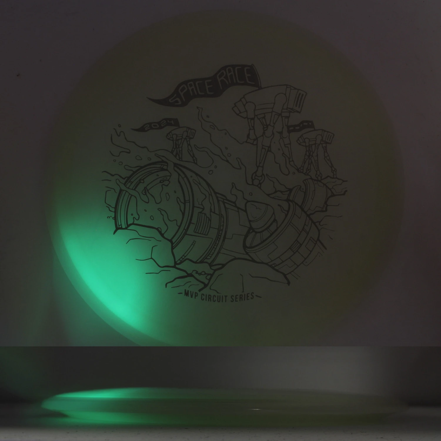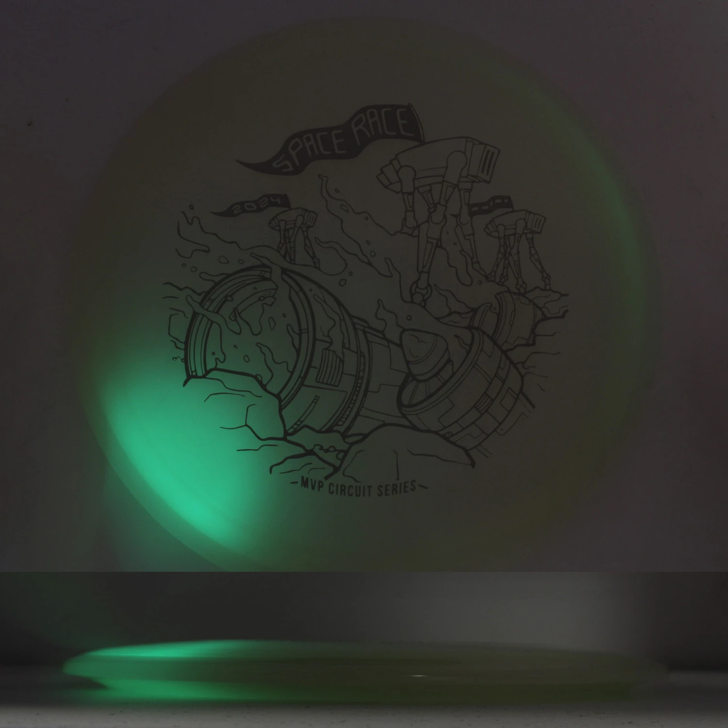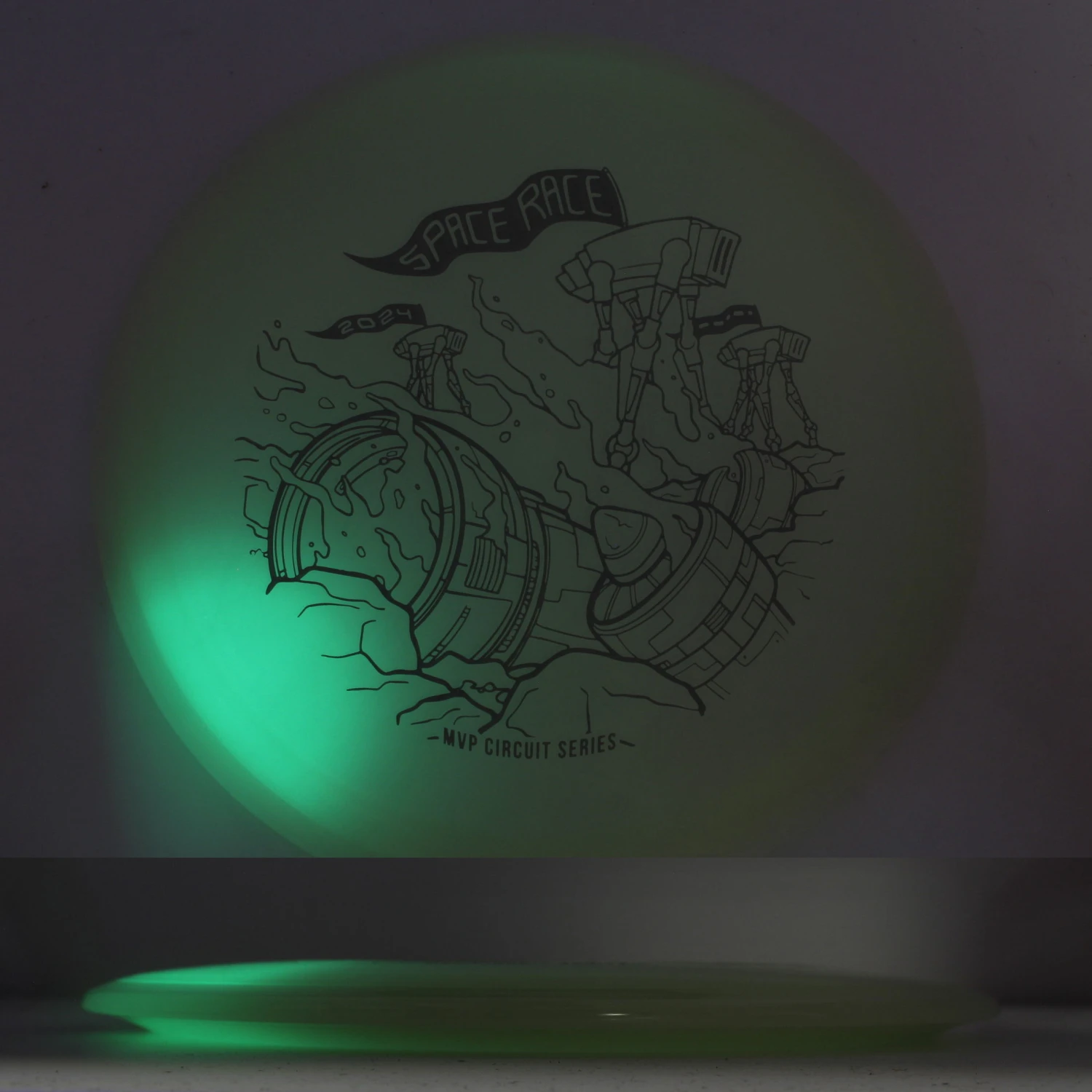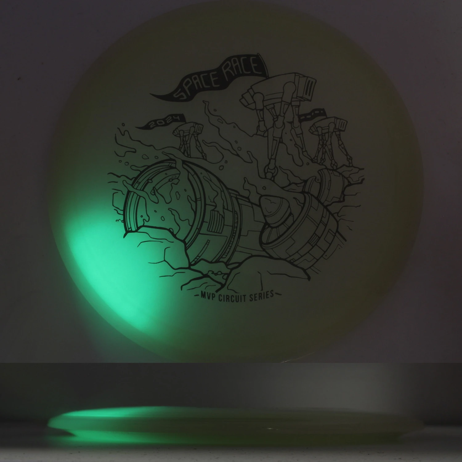 2024 Space Race Total Eclipse Crave – The Axiom Crave is a slow, 6.5 speed, fairway driver that slots perfectly between your mids and traditional fairways. This mold gets plenty of glide and goes really far for a disc of its speed. With a touch of turn and a slow fade back, the Eclipse Crave is perfect for dead straight shots. Describe by some as a beat in fairway out of the box, these discs can be crushed on full power or powered down and still keep a great line. This disc generally holds any line you put it on and is perfect for carving wooded fairways and open shots alike. This is absolutely the perfect fairway for a player of all skill levels, it can be worked on a ton of lines in the woods and is really a perfect slow disc for shaping shots. It is one of the best and most controllable fairways there is.