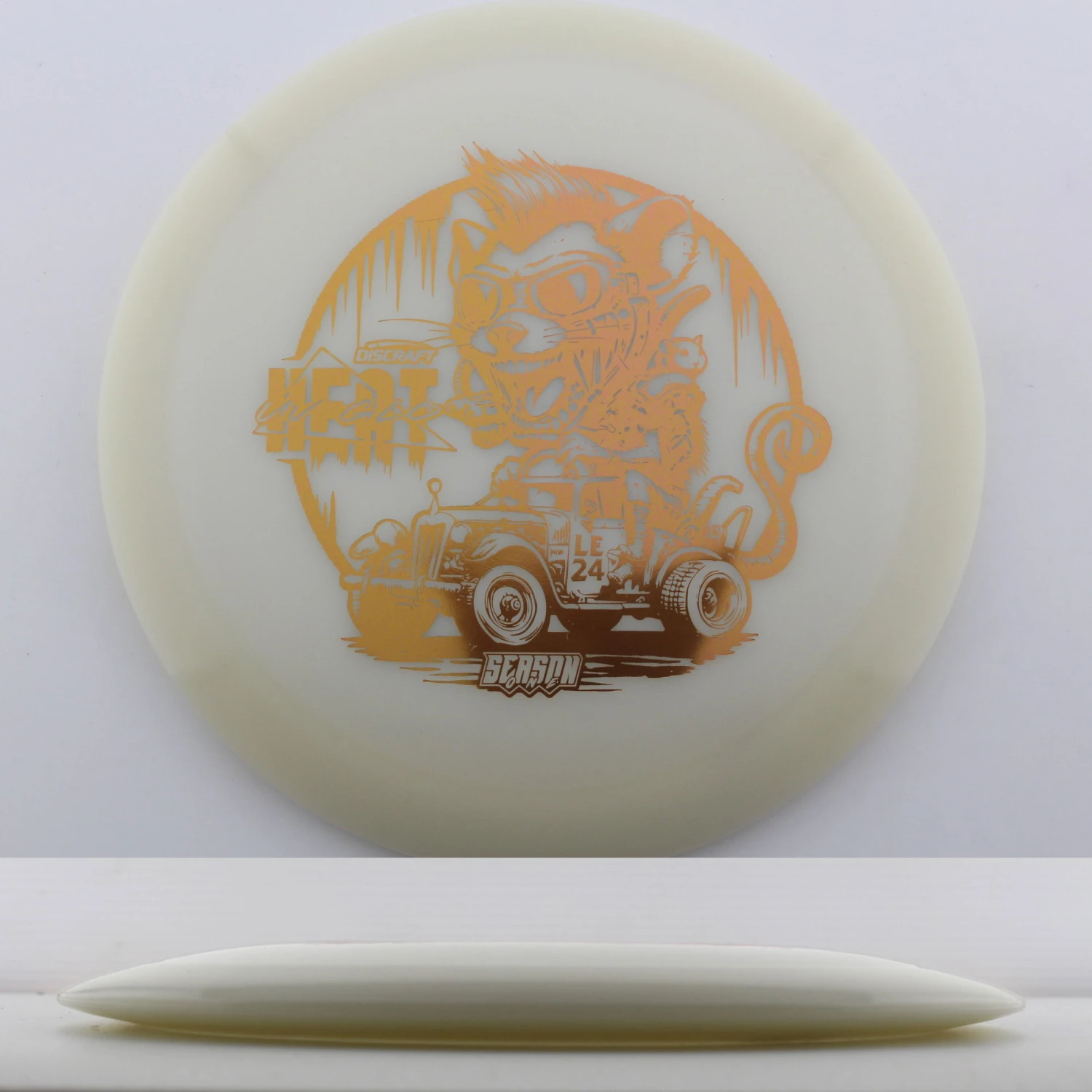 Discraft says this about the mold: “The Heat™ debuted as the 2014 Ace Race proto and quickly caught fire with players for its control, glide and distance at slower arm speeds. It has a smaller rim for easier grip, and is being hailed as a breakthrough in delivering improved distance for new and developing players.“