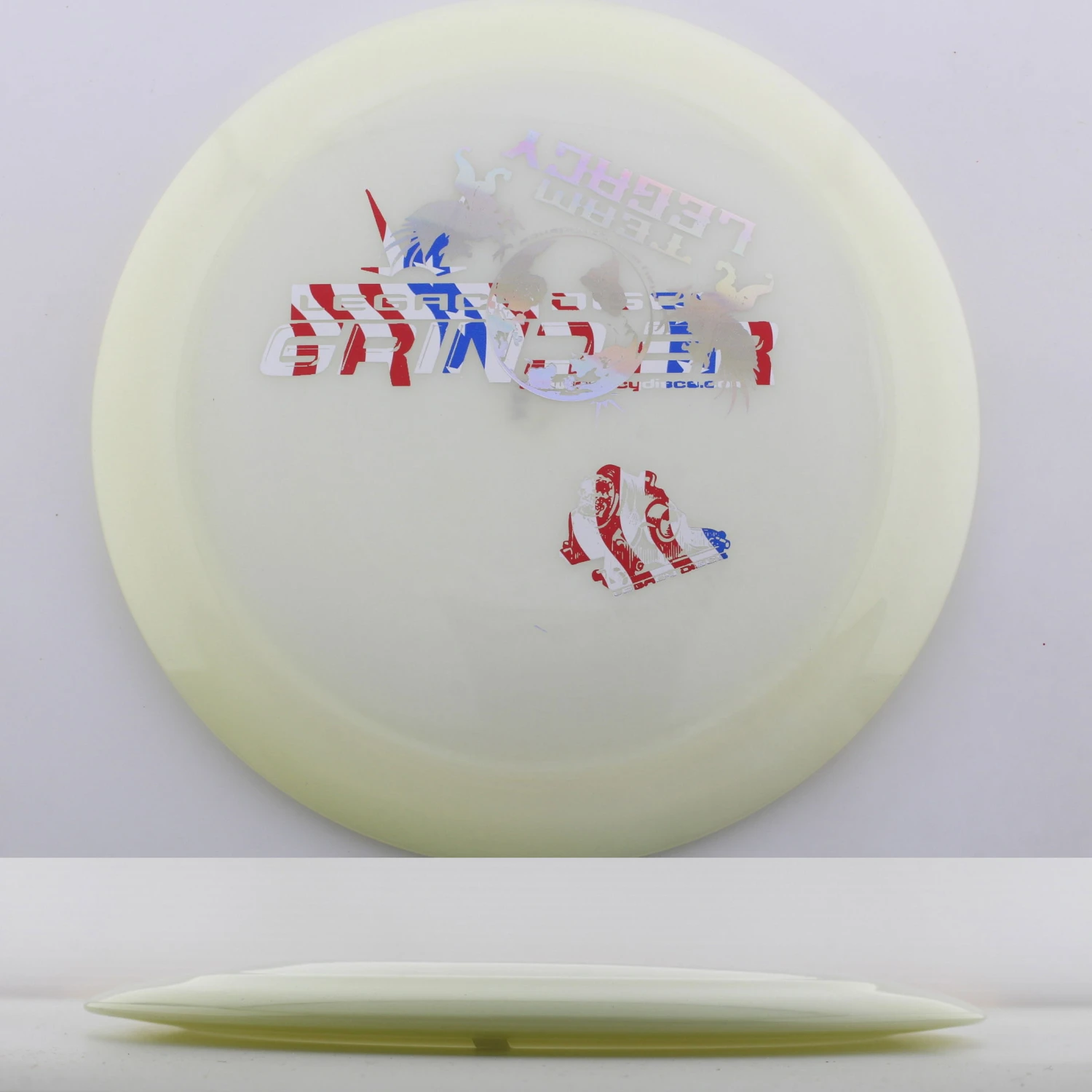 X-Out Glow Cannon – This wide-rimmed bomber has some serious speed and turn! With a 2.5cm Rim Thickness, the Cannon has some big time get up and go to it and the 14 speed corroborates that. One of Legacy’s original molds, released back in 2011, the Cannon has stood the test of time as one of their most popular molds. It is definitely one of the fastest discs on the market and has the Turn to cover ground while not being a meat hook overstable disc. This Limited Edition Glow run is money, if you are looking for more distance, try one of these Cannons out!
