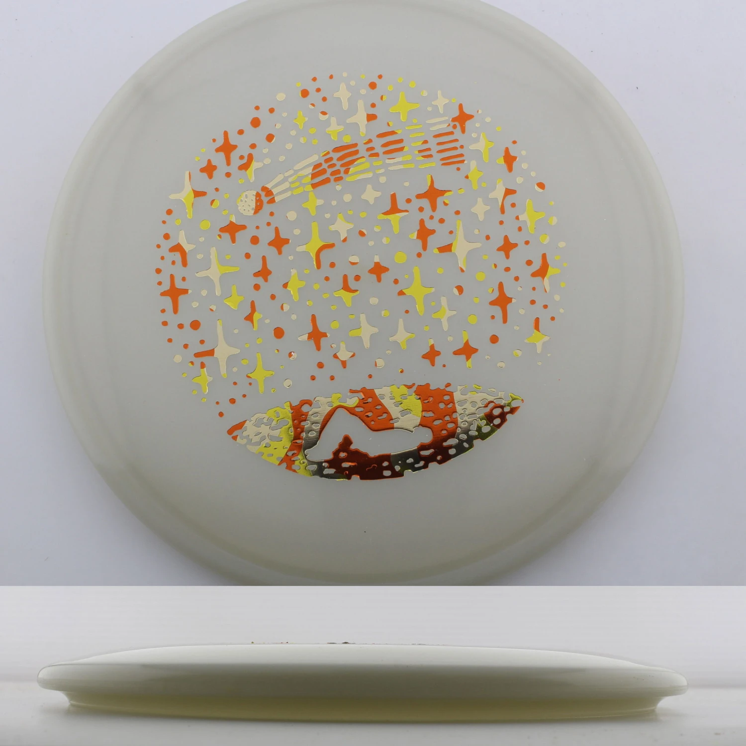 Faylor Lake Z Glo Comet – On the understable side of the spectrum, the Comet is a favorite of many a golfer. Originally produced in 1995, this disc has stood the test of time. Still well liked today, and used as Michael Johansen’s signature mold. The mold is a bit wider diameter than most at 21.8cm (vs 21.7 Buzzz, 21.1 Force) which helps give it more of a Frisbee™ feel and flight. The Discraft Comet is loved by many players, especially those that play in the woods. Make sure you step up your shot shaping abilities and grab a Faylor Lake Z Glo Comet today!