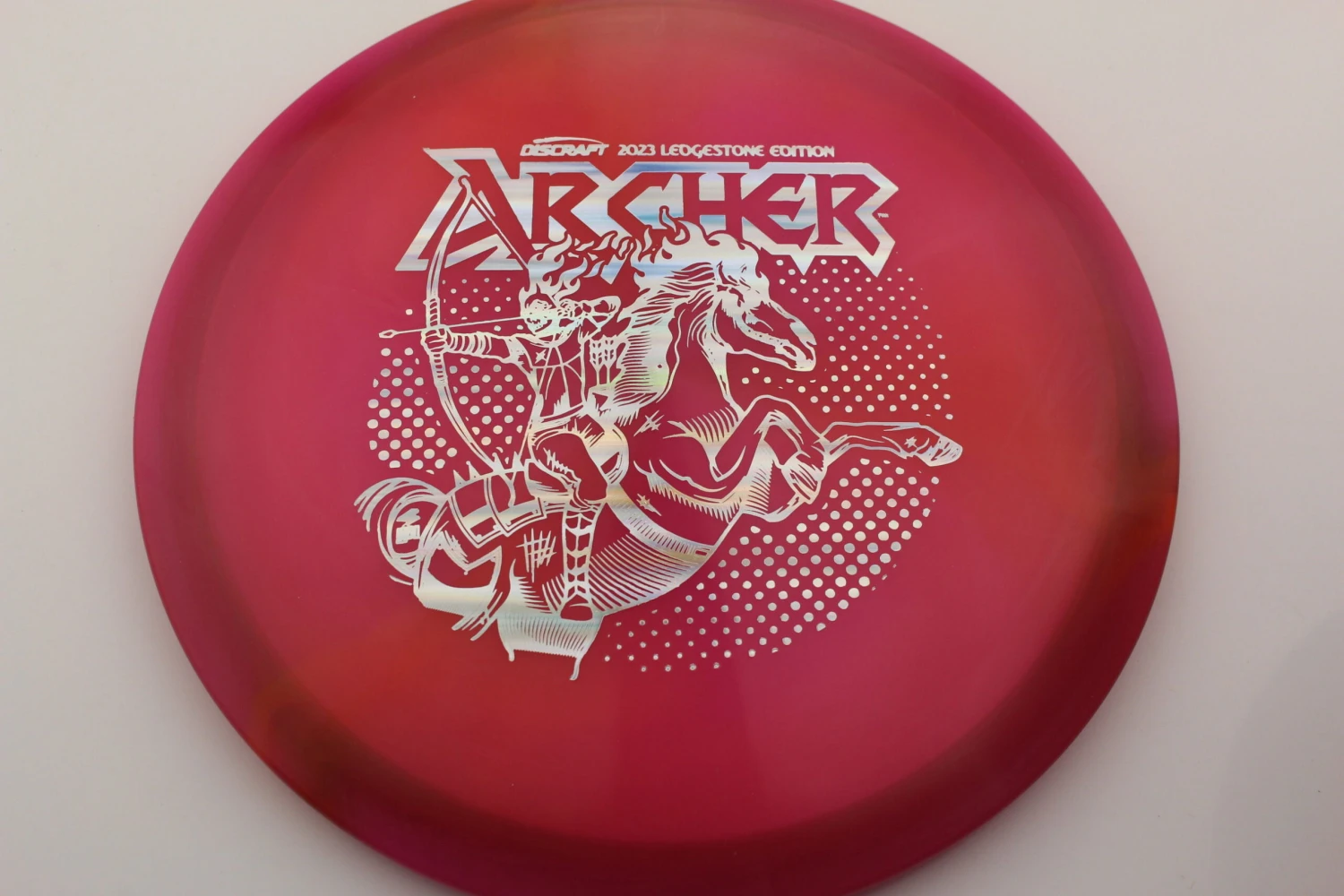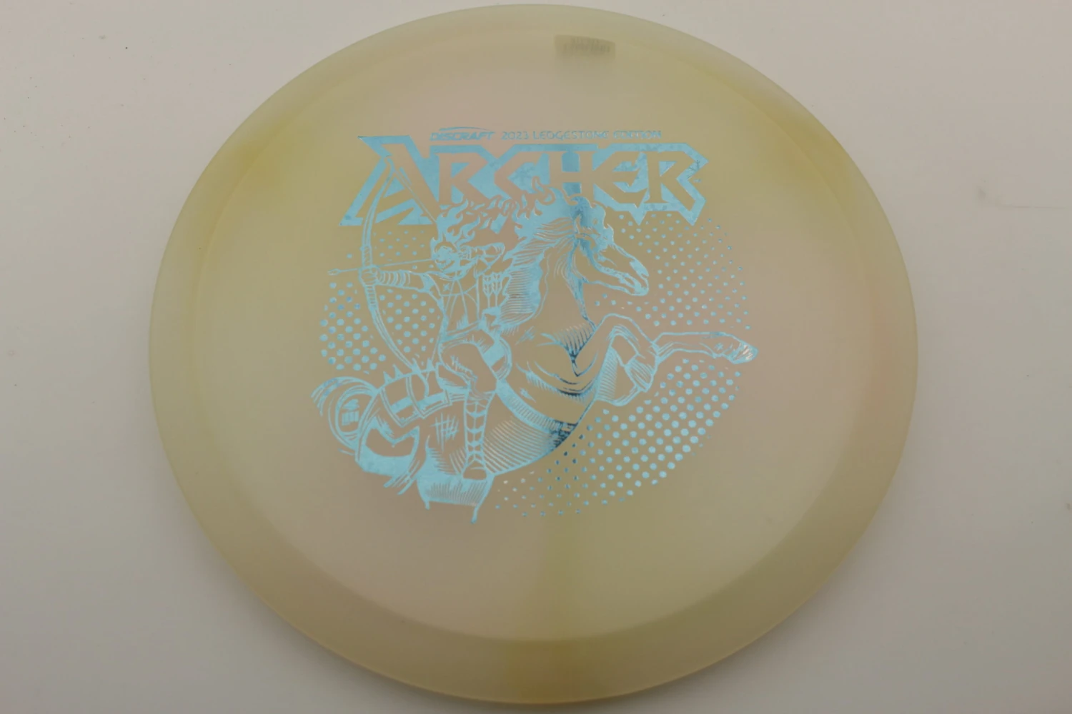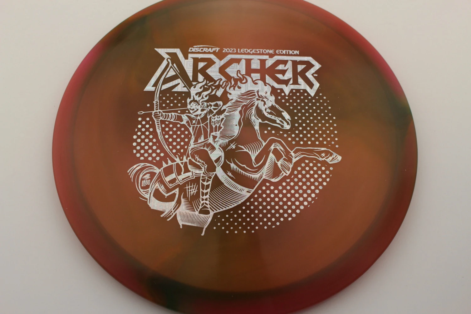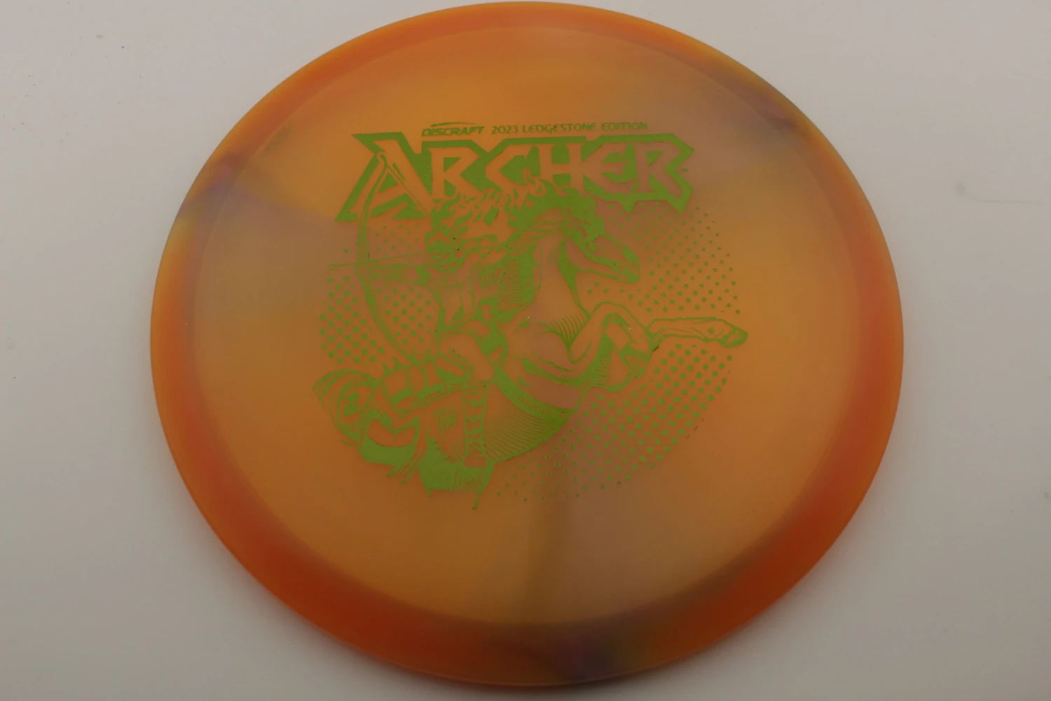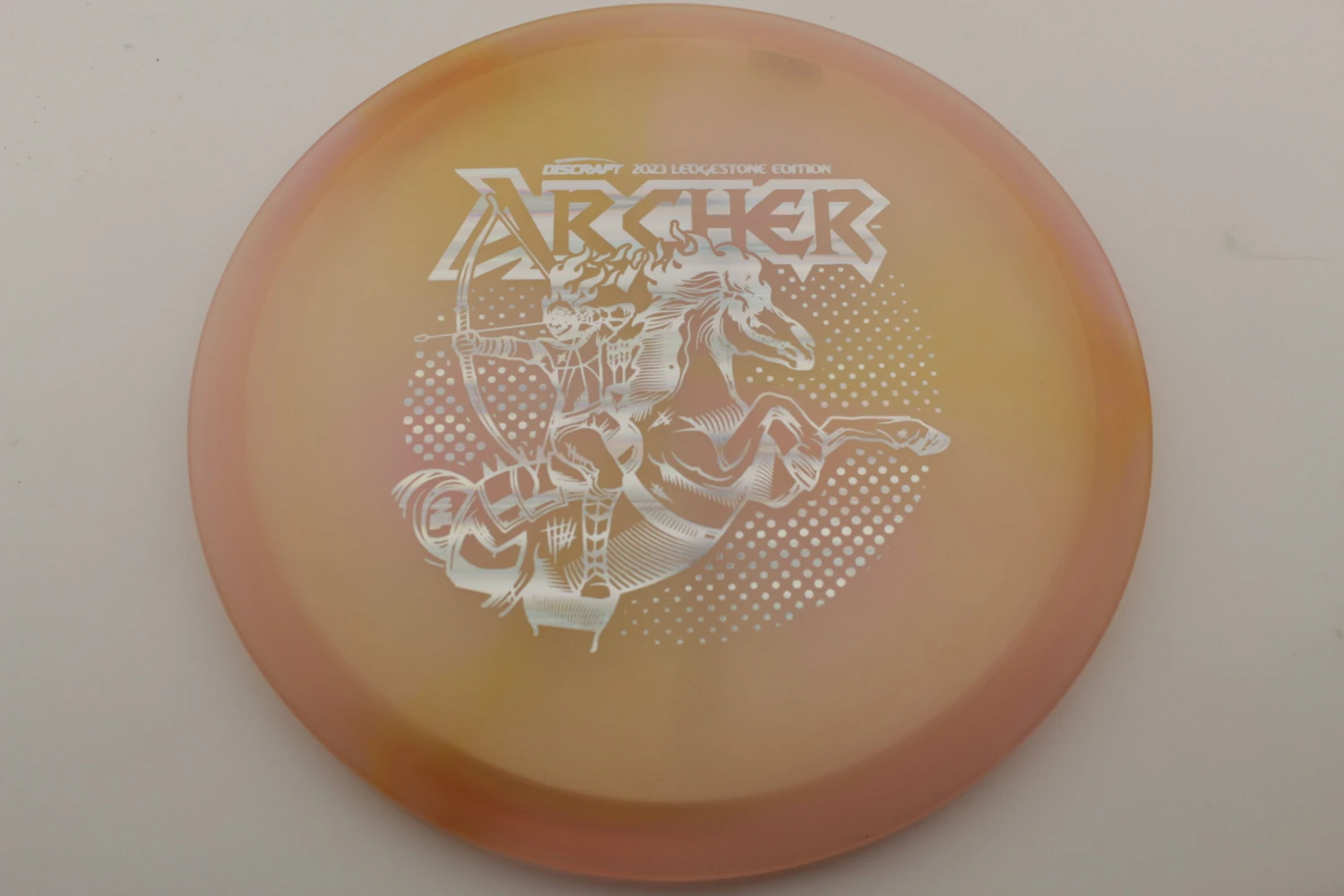 Ledgestone Open says this about the mold: “The Archer is an understable midrange that was released as the 2016 Ace race. The Archer is a great touch disc that is great for long turnover shots and hyzer flips. This disc is great for beginners and anyone looking for an understable disc with incredible glide. If you are stuck in the woods and need to get something to turn over quickly to get to the basket, the Archer is the right disc to pull out of your bag. The total run with this limited release was 1800.”