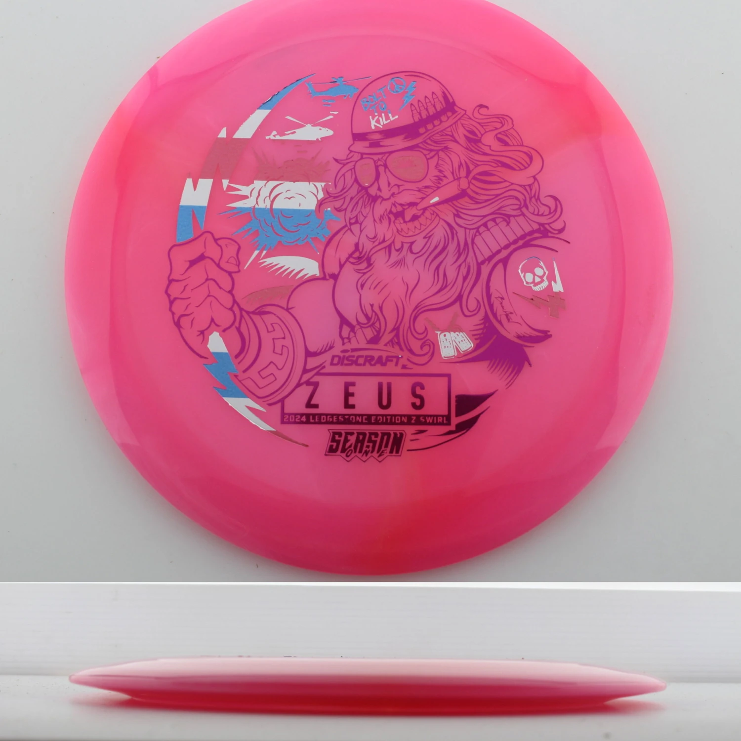 Z Swirl Zeus – The Zeus is one of the longest flyers in the Discraft lineup and in the Z swirl plastic it looks and feels better than ever. This run is a part of Season 1 of the 2024 Ledestone Series. Coming with a clean 2 foil stamp design, these should be fan favorites. We have noticed they are a little stiffer than some runs of the Zeus in the past, making them perfect for those warm summer days. Make sure you pick up a 2024 Season 1 Ledgestone Z Swirl Zeus today.
